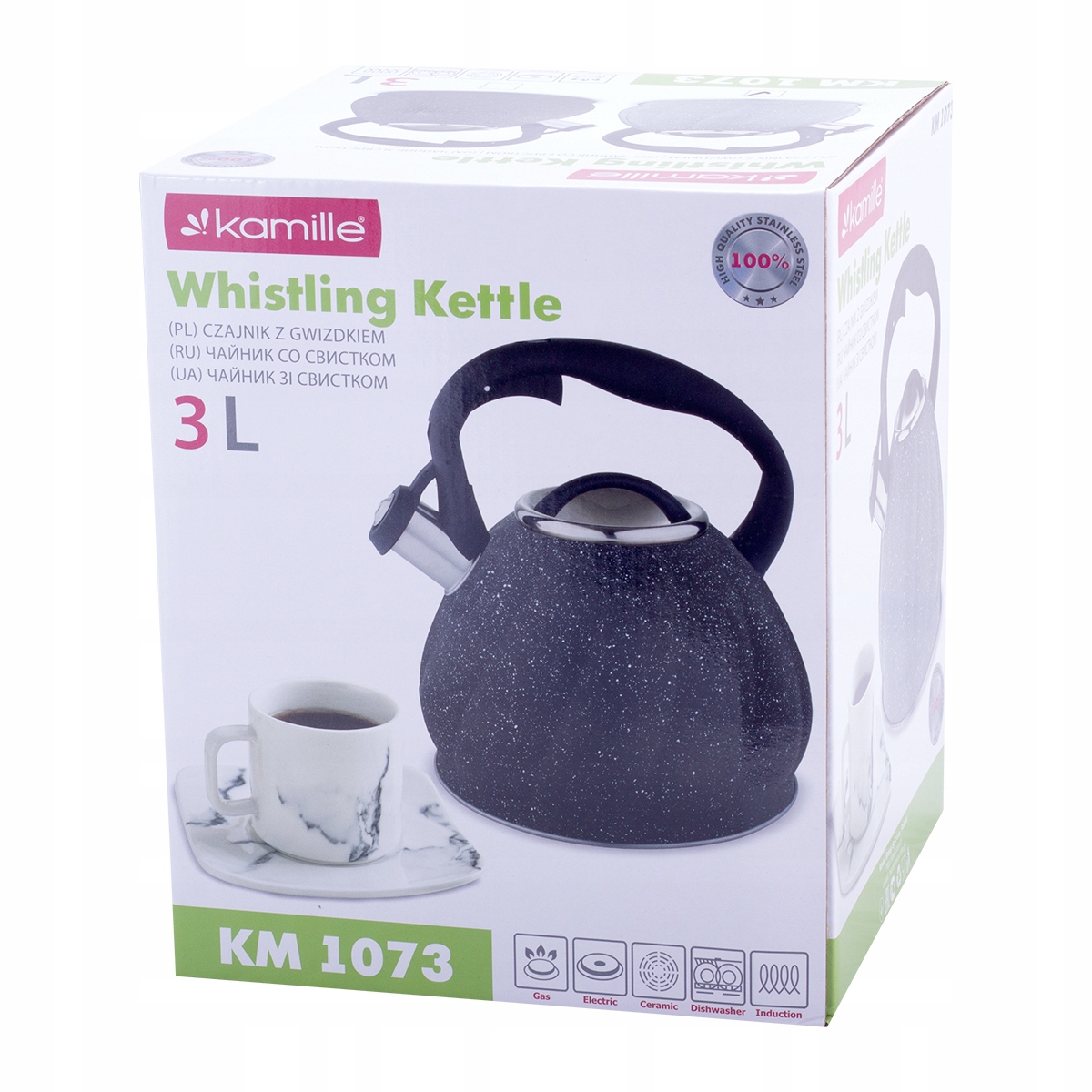 Чайник под мрамор со свистком, нержавеющая сталь, 3,0 л, INDUCTION KAMILLE KM-1073