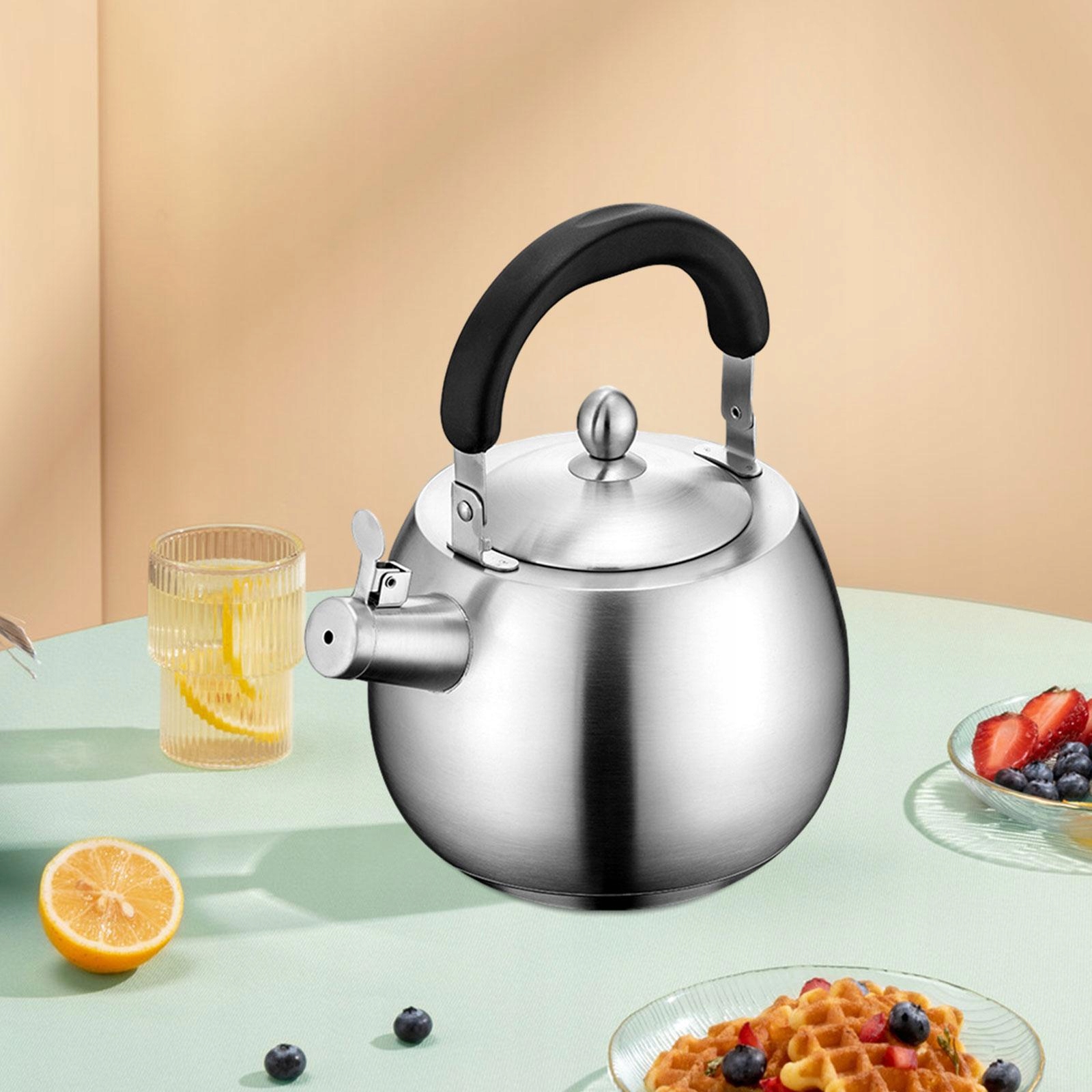 [Дизайн со свистком]: чайник из нержавеющей стали оснащен уникальной системой свистка, которая сообщает, когда вода достигла кипения. точка, обеспечивающая безопасность и удобство использования.