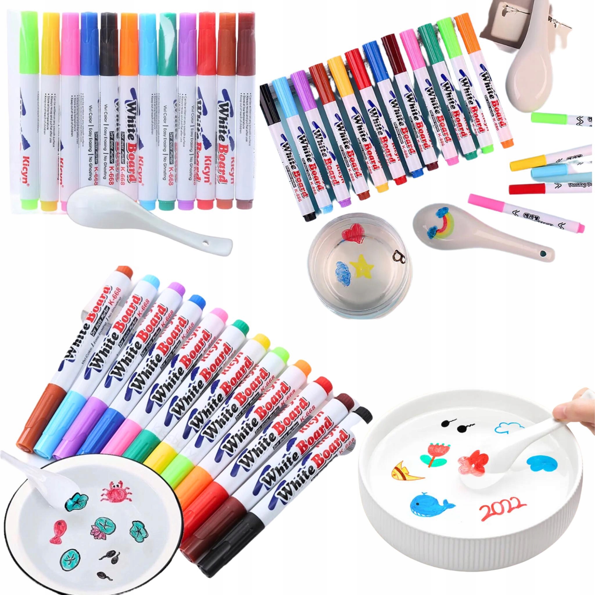 В комплект входят 11 водяных ручек для рисования и пластиковая ложка. Для игры вам также понадобится миска с водой.