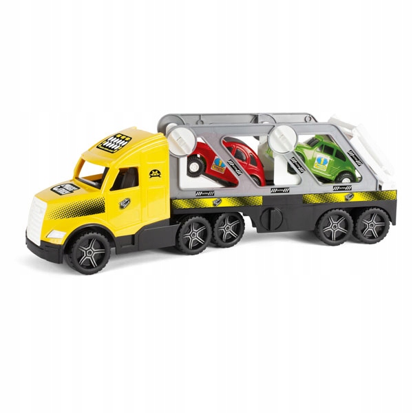 • большое (длиной 79 см), прочное и долговечное транспортное средство, реалистично имитирующее настоящий грузовик – эвакуатор • набор, оснащенный съемным прицепом, рампами, боковинами и 2 ретро-автомобилями • игрушка из очень прочных и безопасных материалов, устойчивых к различным погодным условиям • предназначена для детей 3+