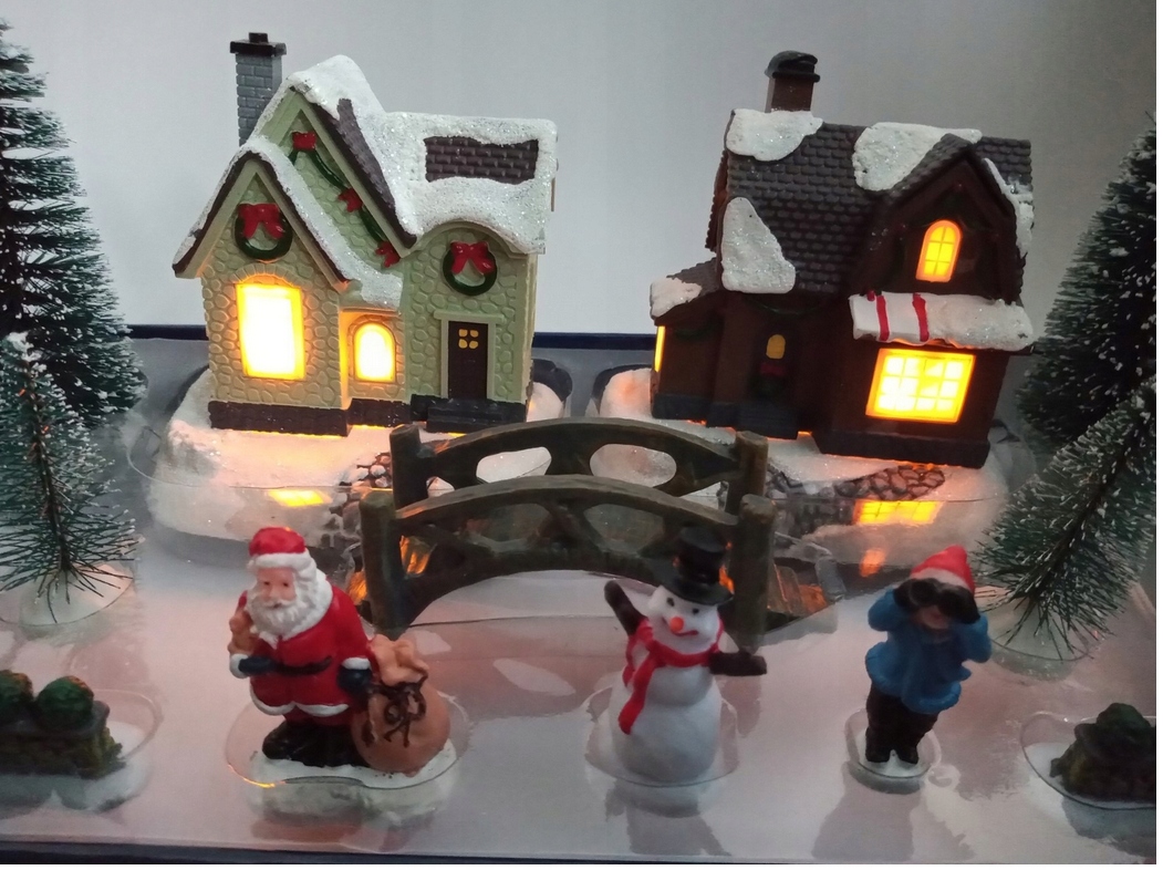 Рождественский городок/деревня со светодиодными фонарями. Рождественские украшения