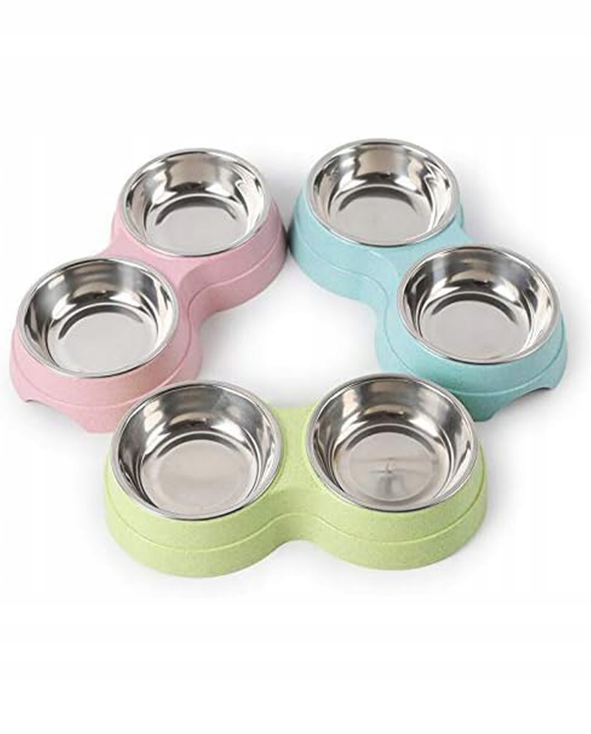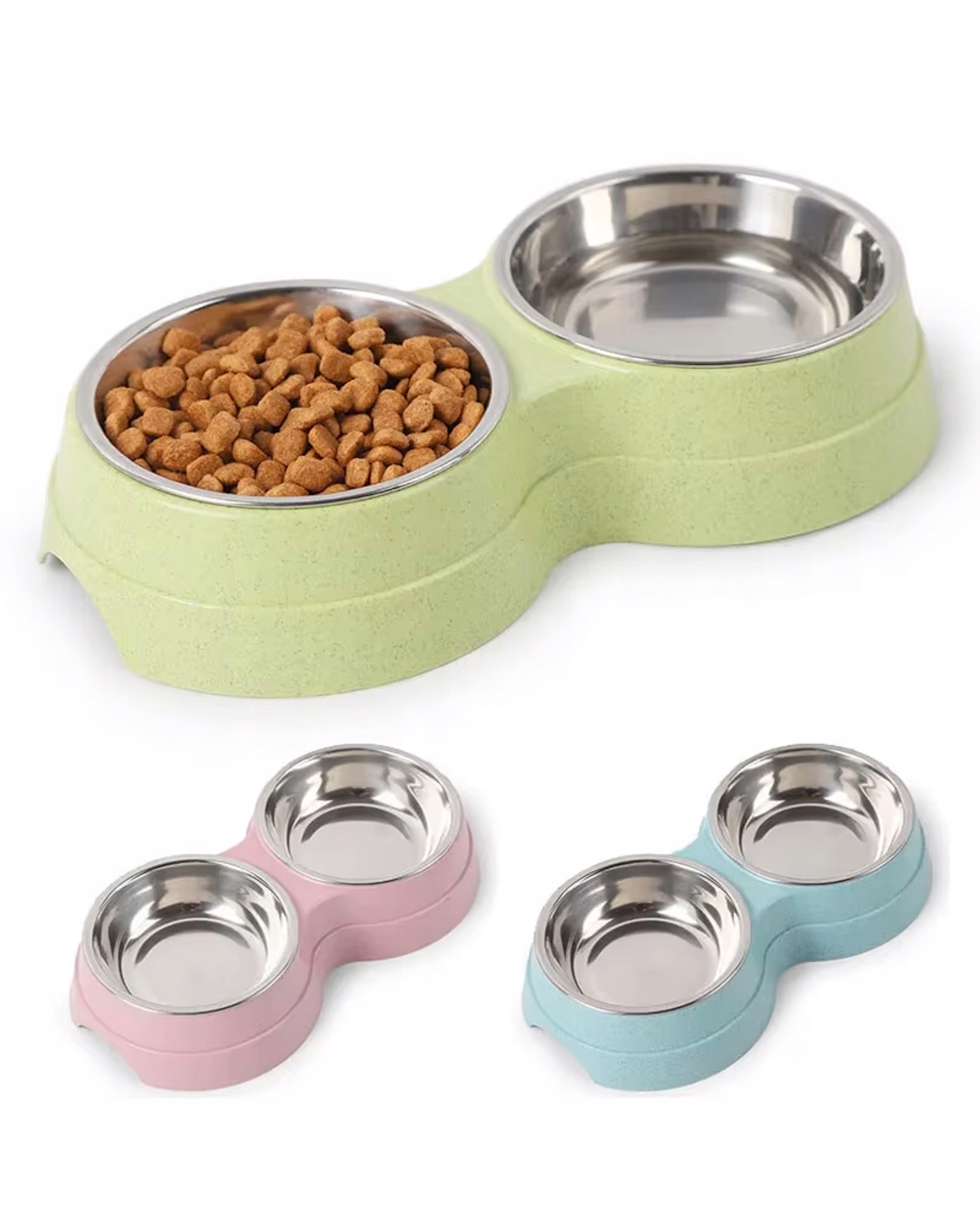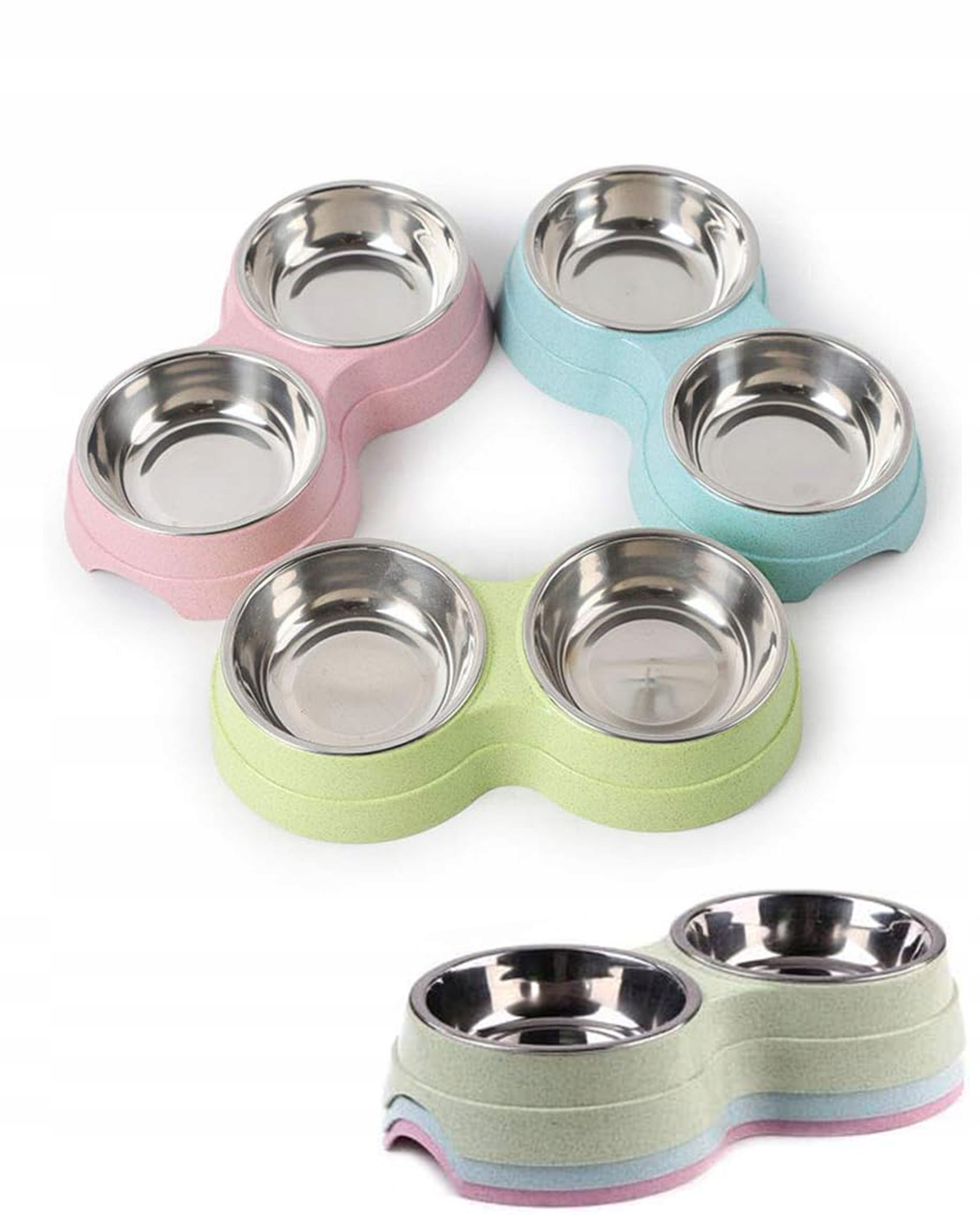 ДВОЙНАЯ МИСКА ДЛЯ КОШКИ 2 в 1, металлическая для влажного сухого корма и воды, розовая