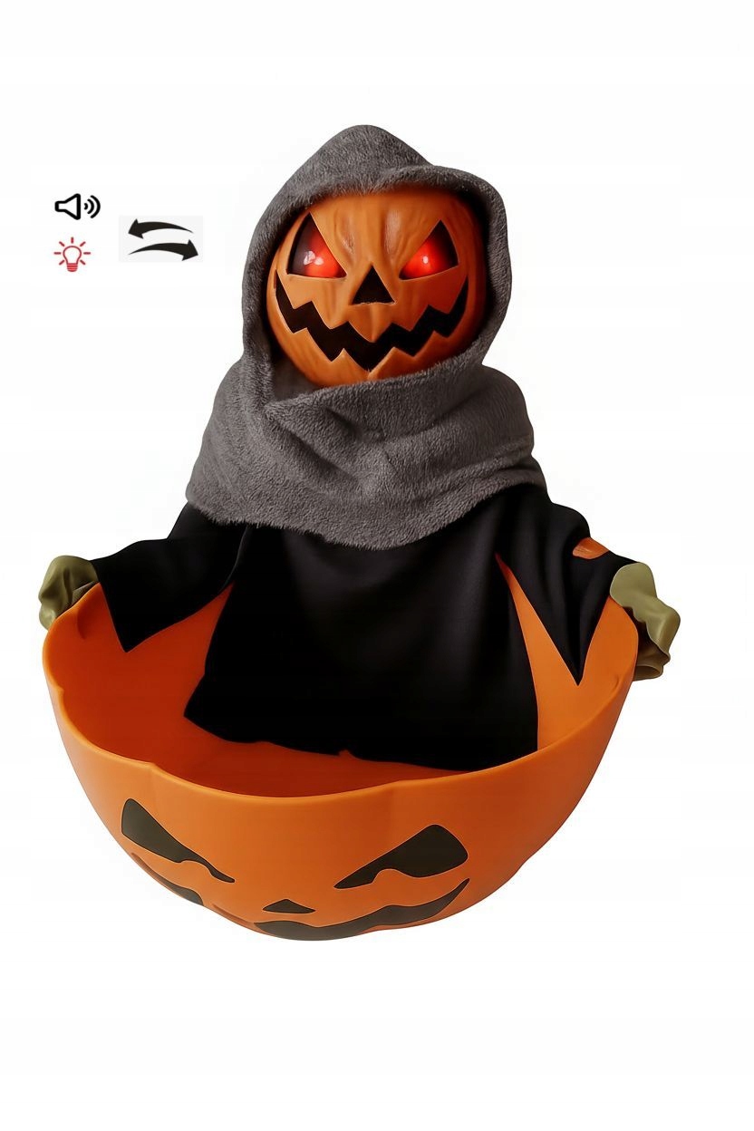 Эта чаша Хэллоуина с тыквой реагирует на движение - когда кто -то достигает сладостей, глаза тыквы загораются красными, а ужасные звуки слышат от громкоговорителя. Идеально подходит для дома, для офиса, магазина или в качестве эффективного входного украшения.