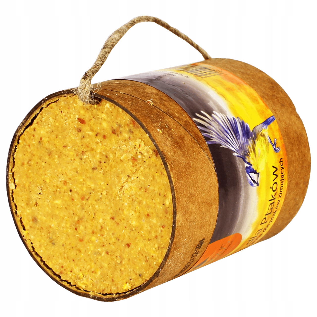 В упаковке находится картонный рукав - тюбик, наполненный 400 г жирово-семенной смеси, являющейся натуральной пищевой добавкой. Осенью и зимой стоит подумать о наших маленьких друзьях, которые не летают в теплые страны и каждый день вылетают из своих гнезд в поисках ценного корма. Этой жировой смесью вы сможете кормить различные виды и приучать их к пребыванию в вашем саду. Благодаря веревке чашку можно подвешивать без дополнительных приспособлений.