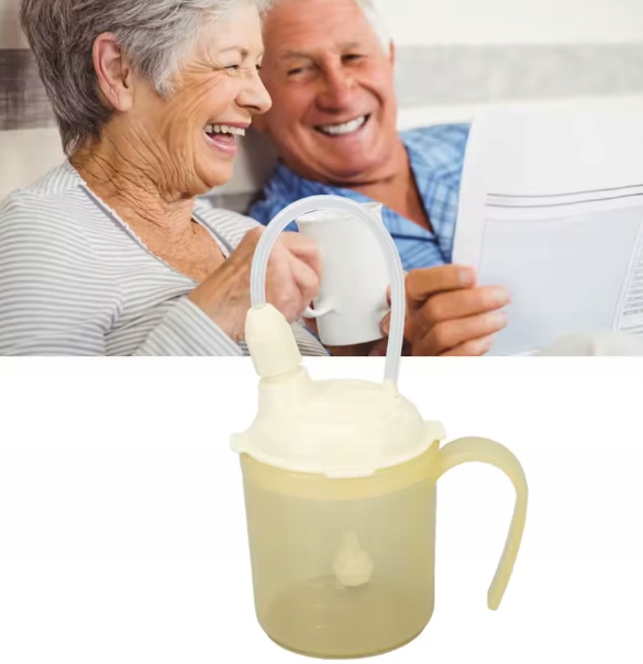 Чашка обеспечивает безопасное и самостоятельное питье, снижает риск проливания напитка и поддерживает независимость пожилых людей и пациентов после процедур.