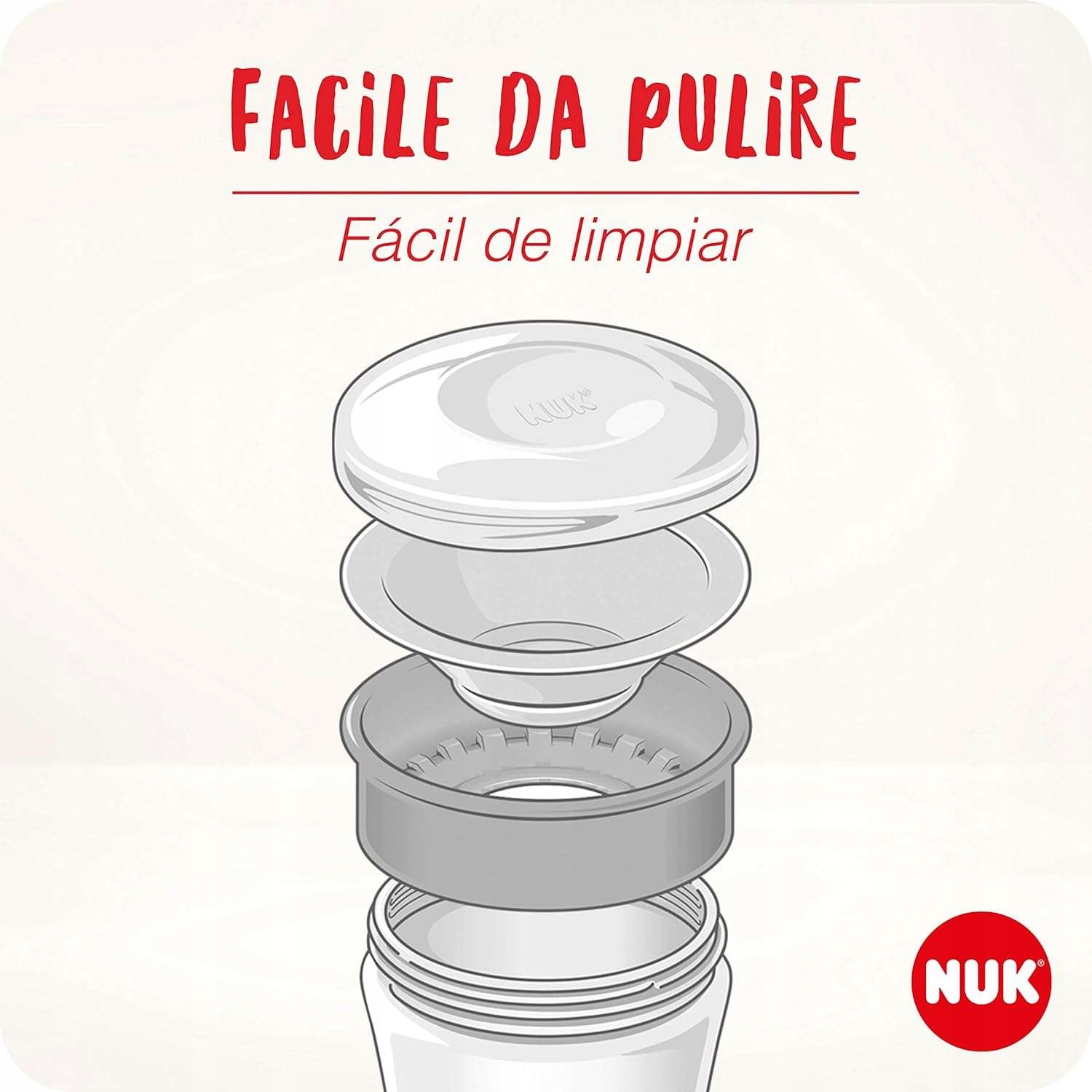 Кружка Magic изготовлена из высококачественных, прочных материалов, на 100 % не содержащих BPA, и украшена принтом с милыми мотивами. Он состоит из нескольких отдельных частей, которые легко разбираются и чистятся. Просто положите его в посудомоечную машину. А чтобы чашка NUK Magic Cup оставалась чистой и безопасной во время путешествия, она защищена дополнительной крышкой.