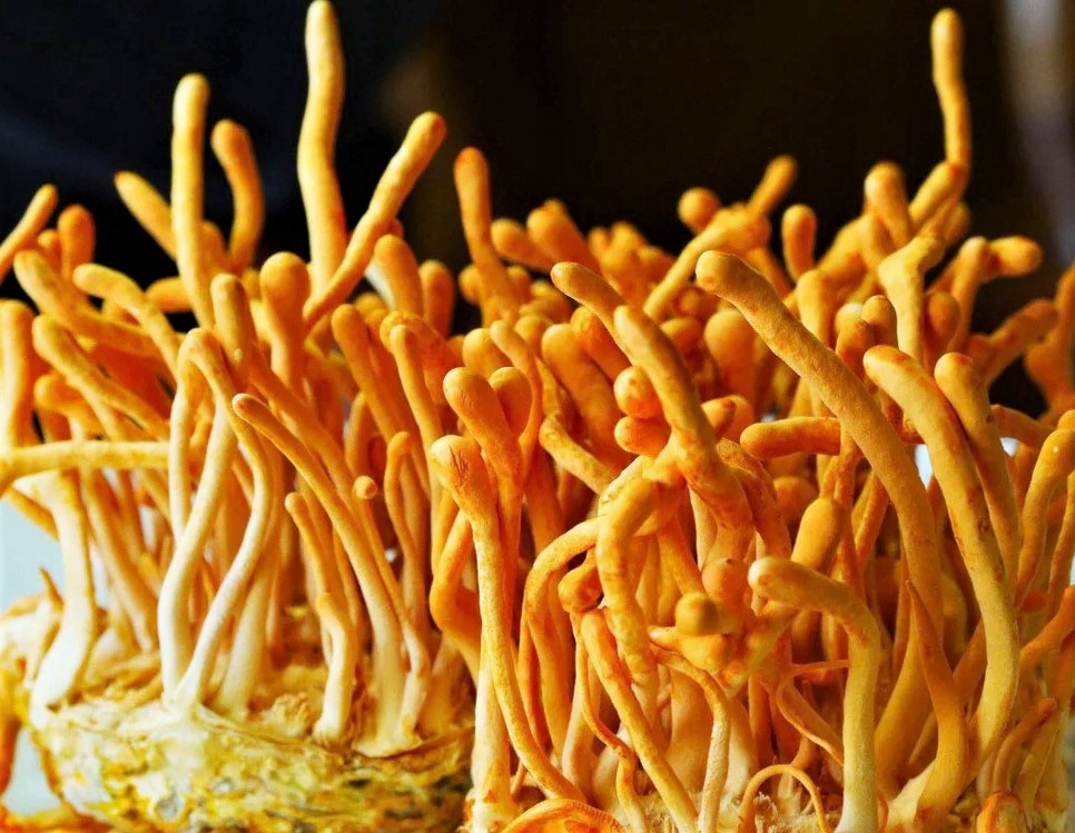 Кордицепс (Cordyceps militaris) в. Кордицепсы очень редки в природе. Его естественная среда обитания – Тибетское нагорье. Зимой паразитирует на личинках насекомых, найденных под землей. Летом мицелий выходит на поверхность. Плодовые тела оранжевого цвета не больше большого пальца взрослого человека. Это уникальный гриб, благотворно влияющий на общее состояние всего организма, который уже сотни лет ценится в традиционной восточной медицине и в настоящее время набирает популярность. Прежде всего, кордицепс укрепляет иммунитет, ускоряет детоксикацию и повышает либидо.