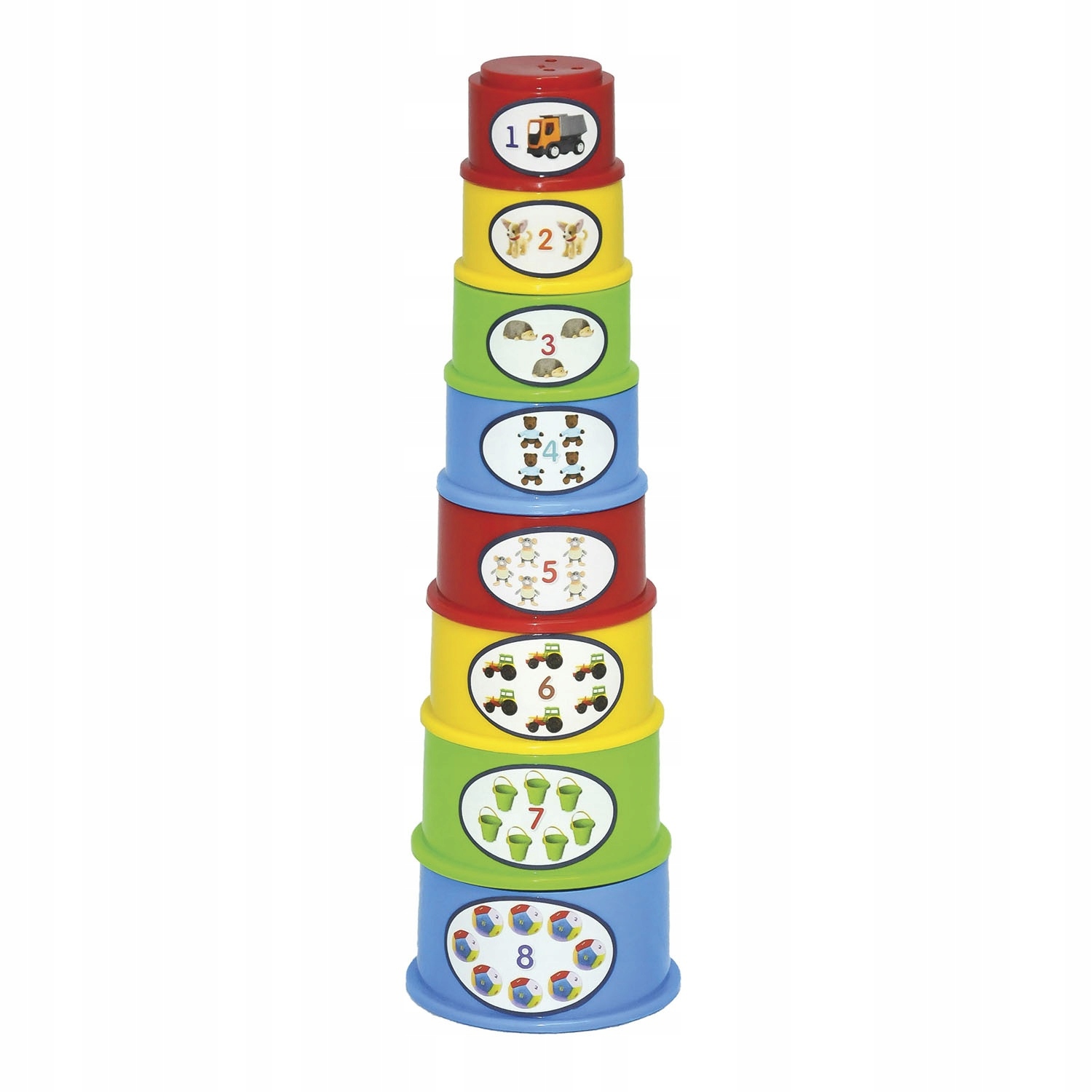 Универсальная игрушка, сила которой в ее простоте, что дает широкие возможности для развития воображения и творчества. Восемь красочных обучающих стаканчиков разных размеров со специальными углублениями, которые позволяют легко складывать их друг на друга и создавать устойчивую башню. Играть с продуктом можно по-разному – можно ставить чашки друг на друга, ставить чашки друг в друга или переливать различные продукты между чашками, что влияет на сенсорное развитие. Благодаря тому, что стаканчики разного цвета, малыш учится их узнавать, а благодаря наклейкам с цифрами он может попрактиковаться в сложении и вычитании.