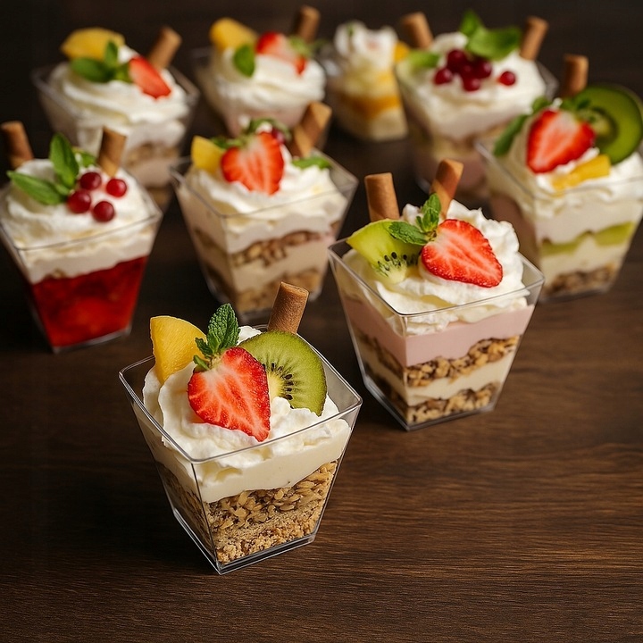 ⭐ Конечно! Наши чашки, сделанные из элегантного пластика , имитирующего стекло, не только выглядят красиво, но и подчеркивают эстетику каждого десерта.