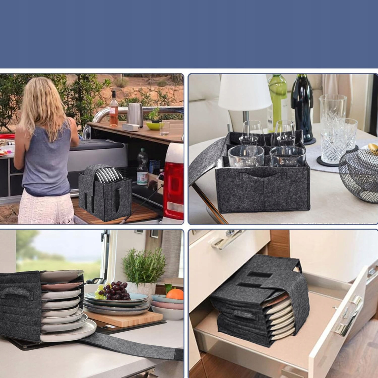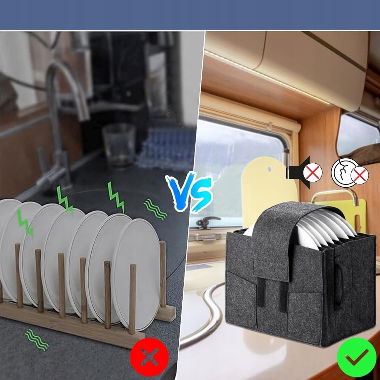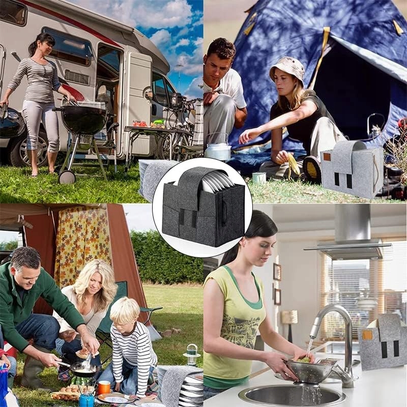 ▶ 100% переработка: без лоскута во время вождения: Владелец войлочной тарелки RV изготовлен из высококачественного войлочного материала, который является экологически чистым и покрытым, сложенным, с отсеченными отсеками, это практическое ощущение в ящиках, шкафах и полках, идеальный выбор для отдыха для кемпинга, караванов или транспортных средств.
