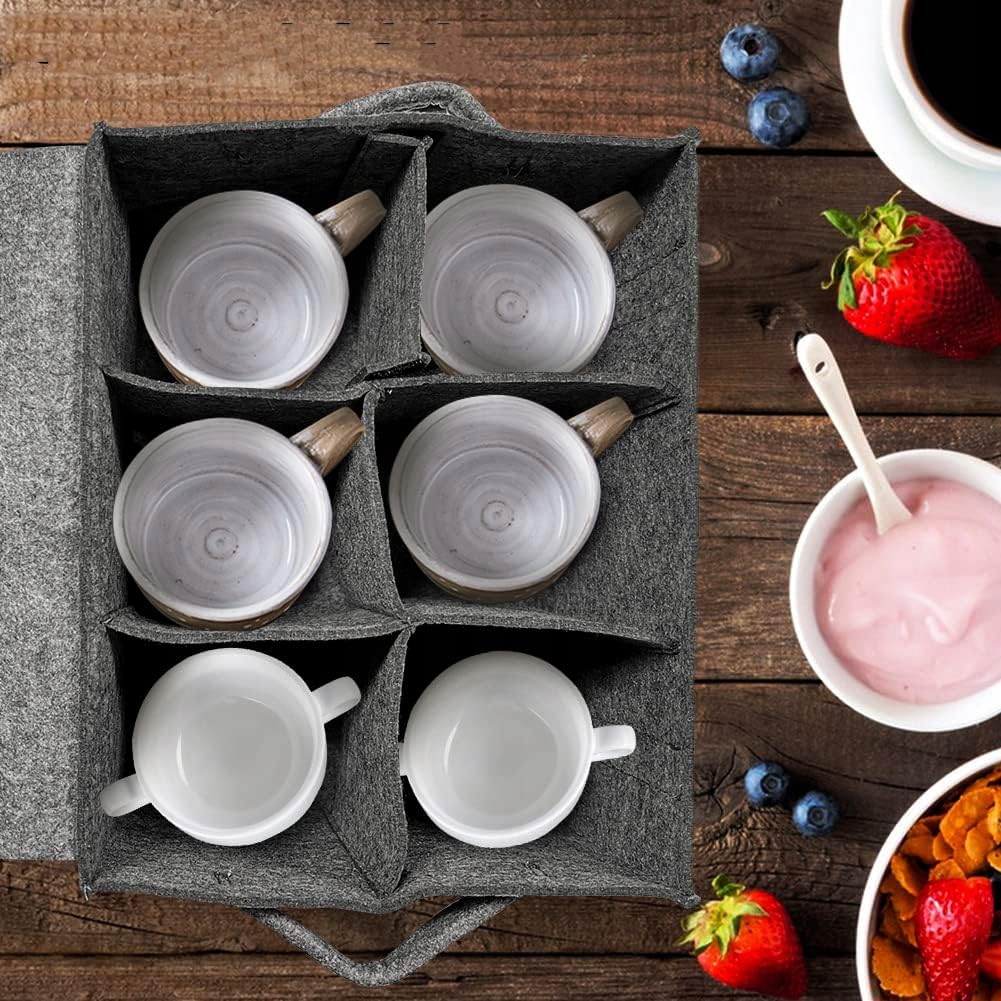 ▶ Сумка для хранения от войлочной платы: набор содержит два кармана для хранения, а в лагере есть размеры 27 x 20 x 18 см, с 8 слоями и может удерживать 8 досок с максимальным диаметром 27 см. Он может хранить ломтики, квадратные тарелки, большие и маленькие тарелки и даже суповые тарелки! Размеры ручки кружки составляют 21 x 28 x 1,5 см.