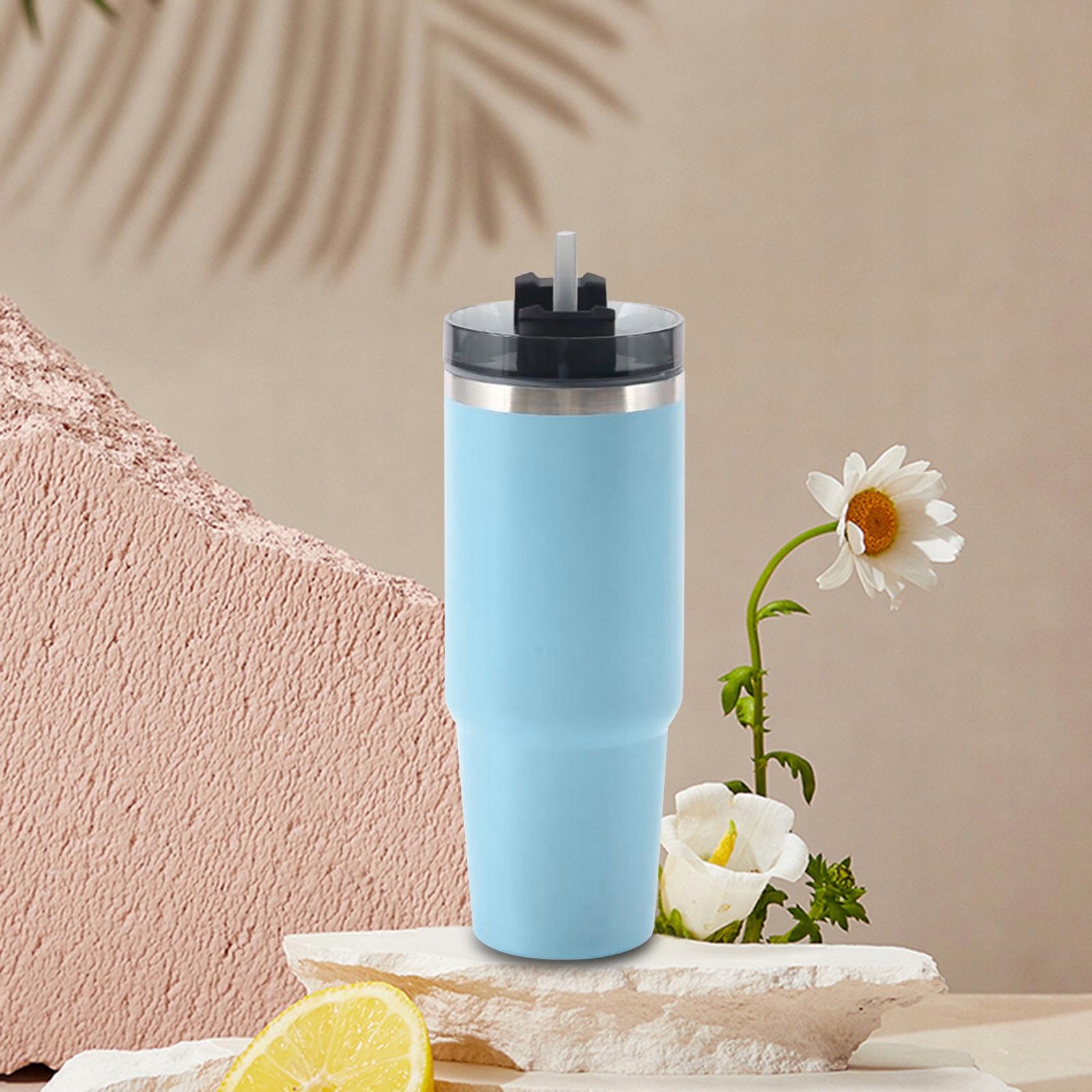 Чашки для воды с соломинкой и крышкой. Кружка из нержавеющей стали. Практичные подарки. Прочный синий, 30 унций.