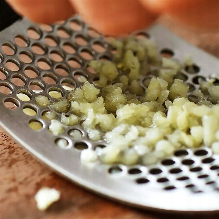 Пресс изготовлен из нержавеющей стали и прочного пластика, что обеспечивает его долгий срок службы. Его легко чистить: промойте его под проточной водой или поместите в посудомоечную машину. Пользоваться прессом очень просто. Просто разрежьте чеснок на более мелкие кусочки, положите его на плоскую и твердую поверхность, а затем раздавите прессом.