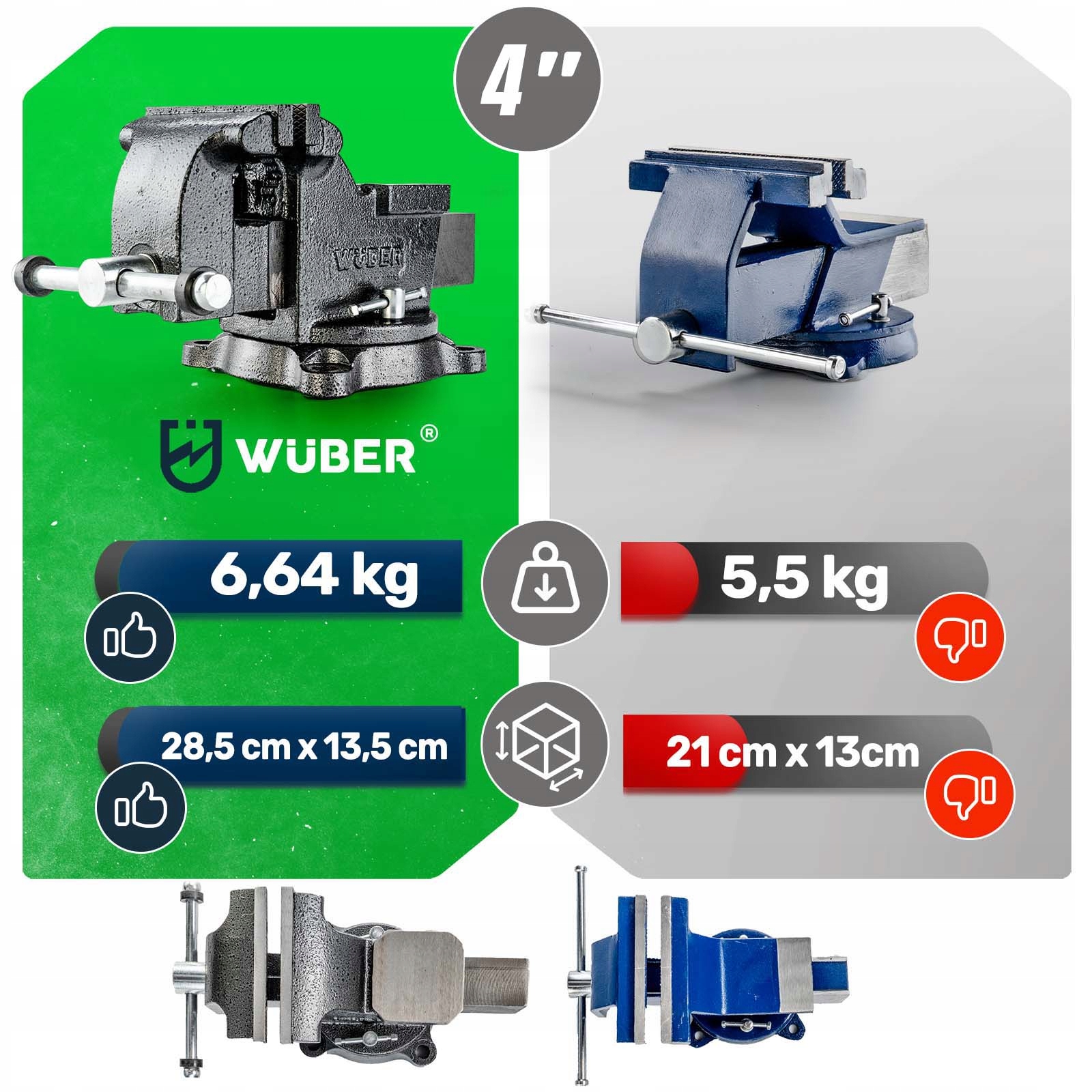 РАЗМЕРЫ ВАЖНЫ:Наши тиски крупнее и массивнее (28,5 х 13,5 см), а более дешевые альтернативы - всего 21 х 13 см.