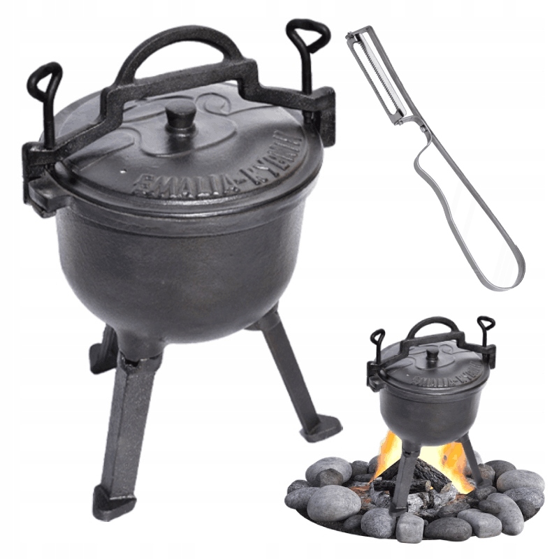 Благодаря конструкции и трем устойчивым ножкам казан можно удачно разместить прямо в костре. или повесить над камином.