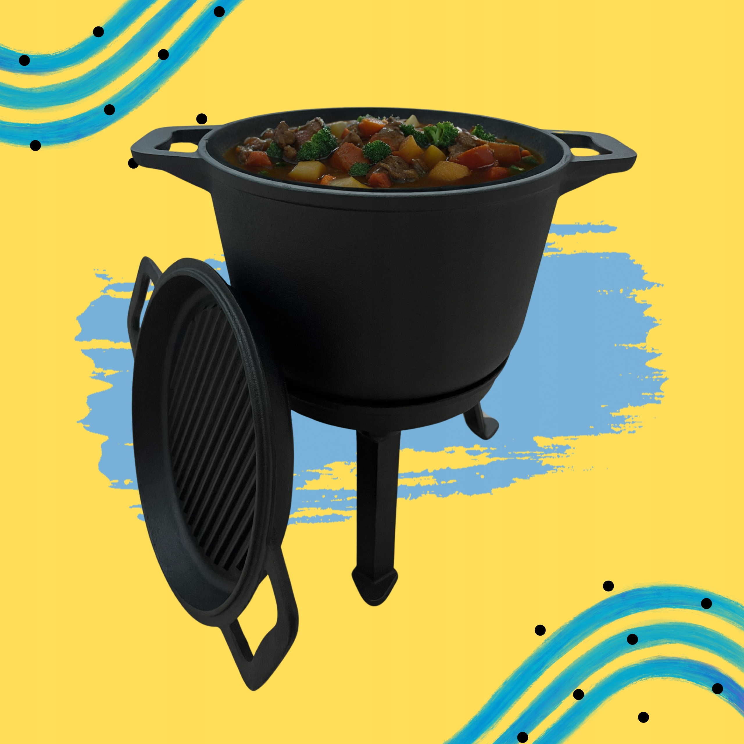 ЧУГУННАЯ ЧУГУНКА С ЖАРОЧКОЙ, Венгерская охотничья кастрюля, 10л, для КАМИНА-ГРИЛЬ