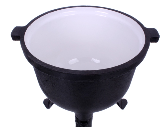 Оригинальный чугунный котел от ROSSNER Austria. Котел отливали из жидкого чугуна, а затем внутренние поверхности котла покрывали слоем эмали. После нагрева толстый слой чугуна обеспечивает равномерное распределение температуры по всей кастрюле, а эмаль предохраняет приготовленную в ней пищу от пригорания.