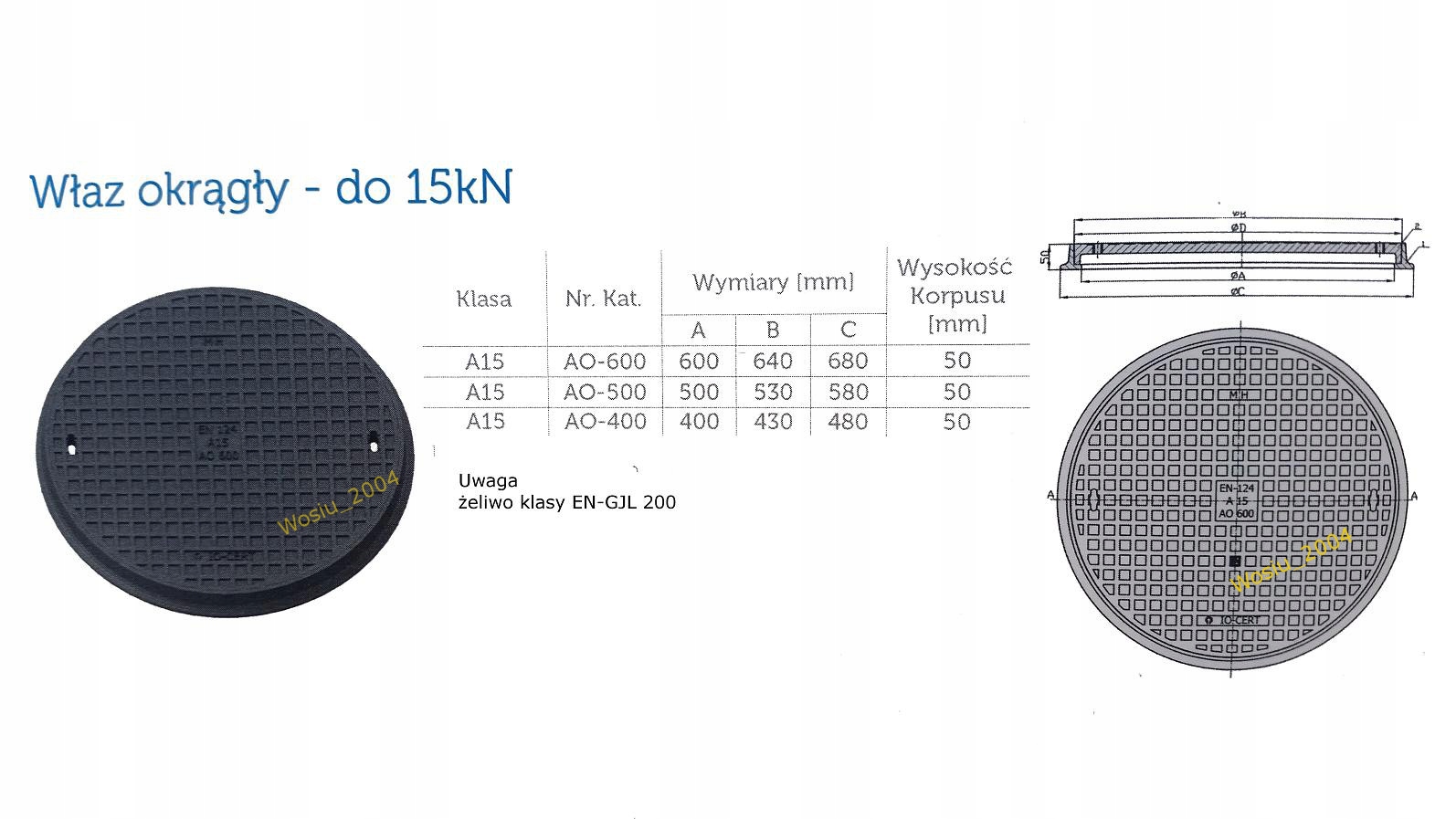 ЛЮКкласса тяжести А15 (1,5 тонны, 15кН), предназначенный для перекрытия подземных контрольных колодцев с возможностью доступа к канализационным сооружениям, водопроводные, газовые и другие трубы, когда лазы расположены вне дороги.