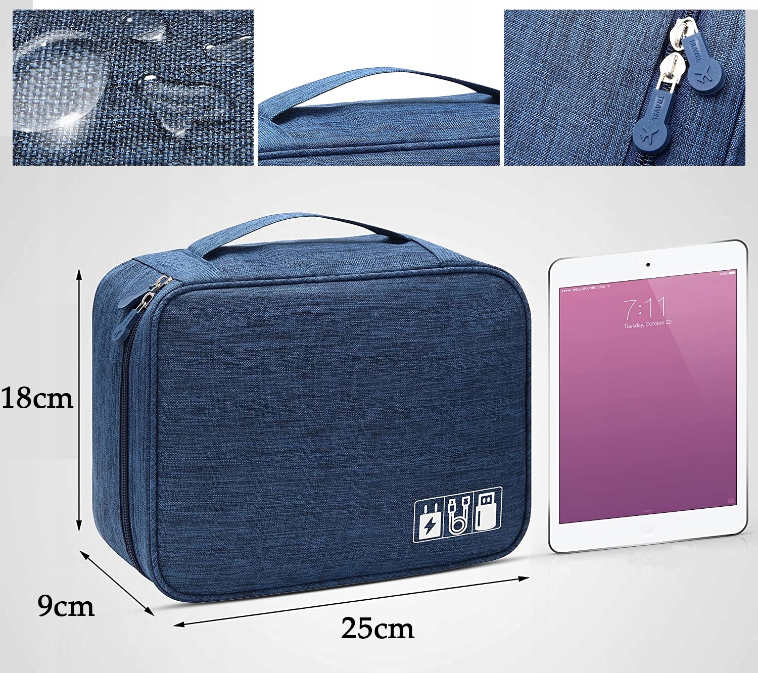 Обеспечивает безопасную транспортировку кабелей, наушников, блоков питания и т. д. Защищает от царапин, других повреждений и грязи