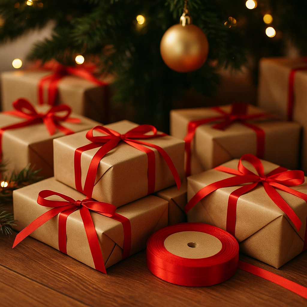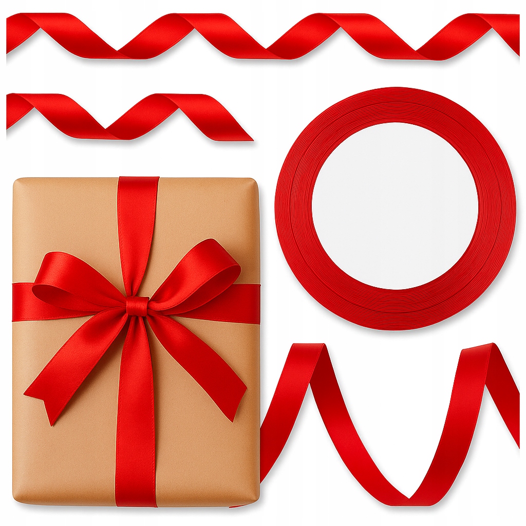 КРАСНАЯ АТЛАСНАЯ ЛЕНТА ДЕКОРАТИВНАЯ ЛЕНТА ДЛЯ РОЖДЕСТВЕНСКИХ ПОДАРКОВ 10 ММ Х 50М