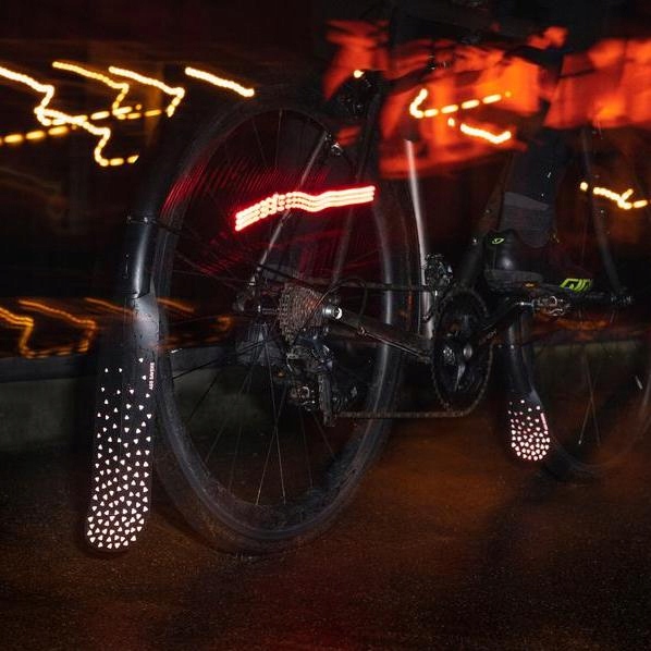 Уникальный брызговик Ass Savers, защищающий ваши ноги от брызг. Он не только предотвращает брызги, но и повышает видимость благодаря светоотражающим рисункам.