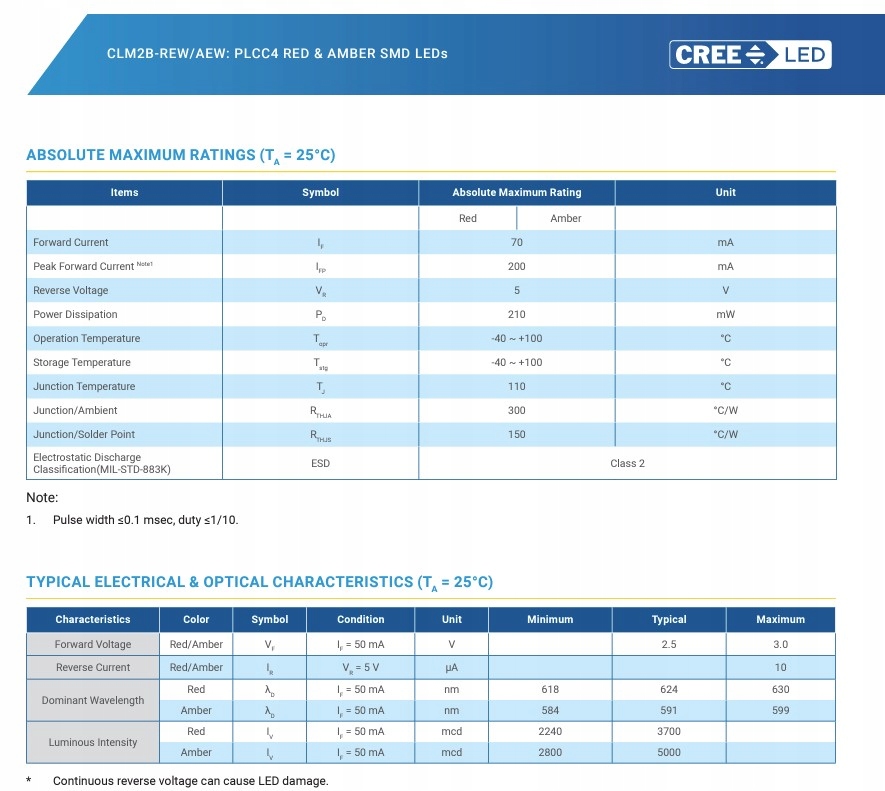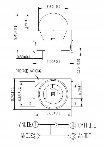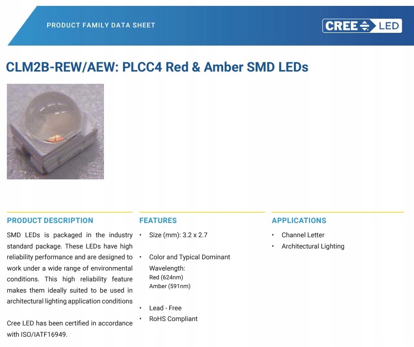 Красный светодиод PLCC4 с линзой 3500мкд CLM2B ___ [2шт]
