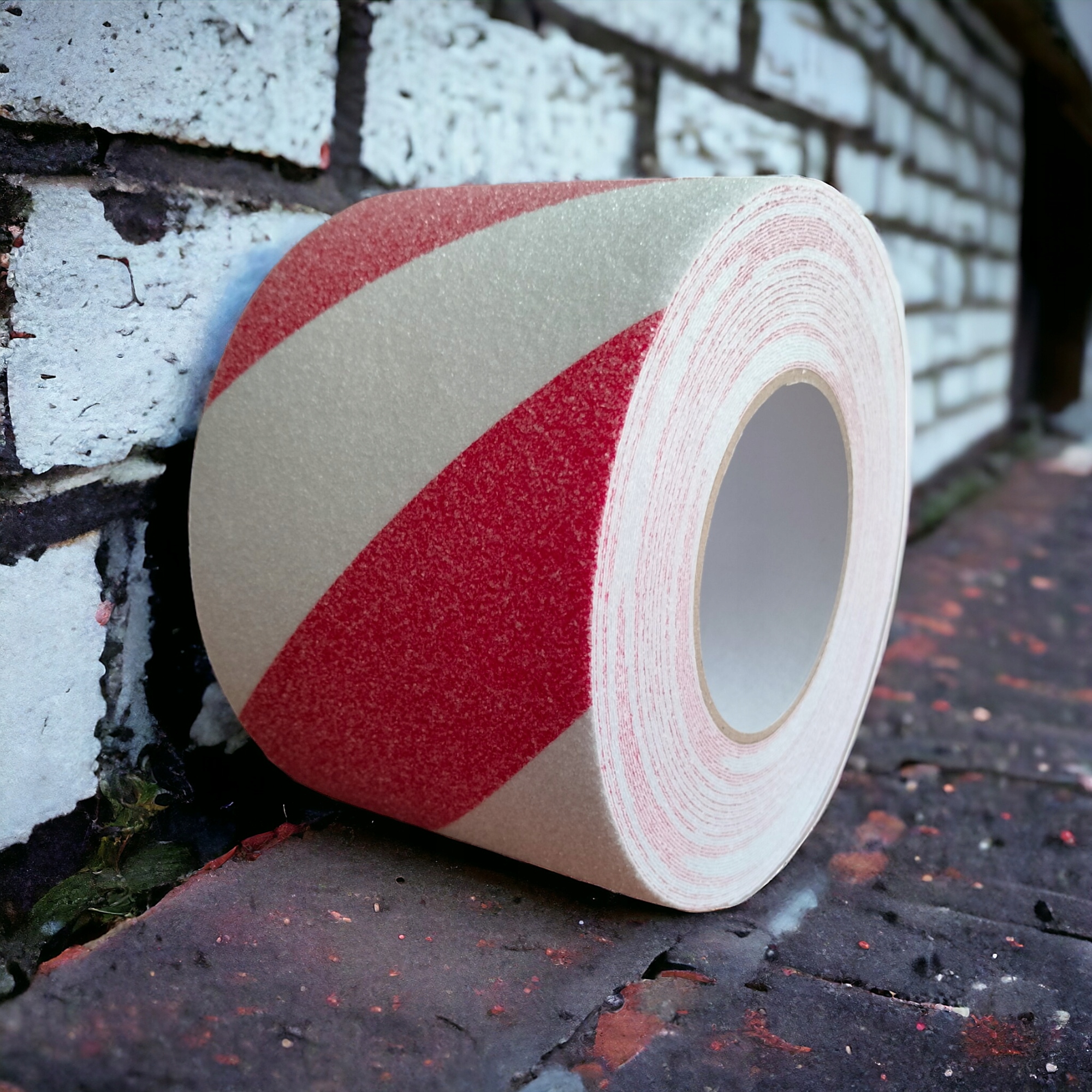 Лента сигнальная противоскользящая красно-белая 100мм/6м