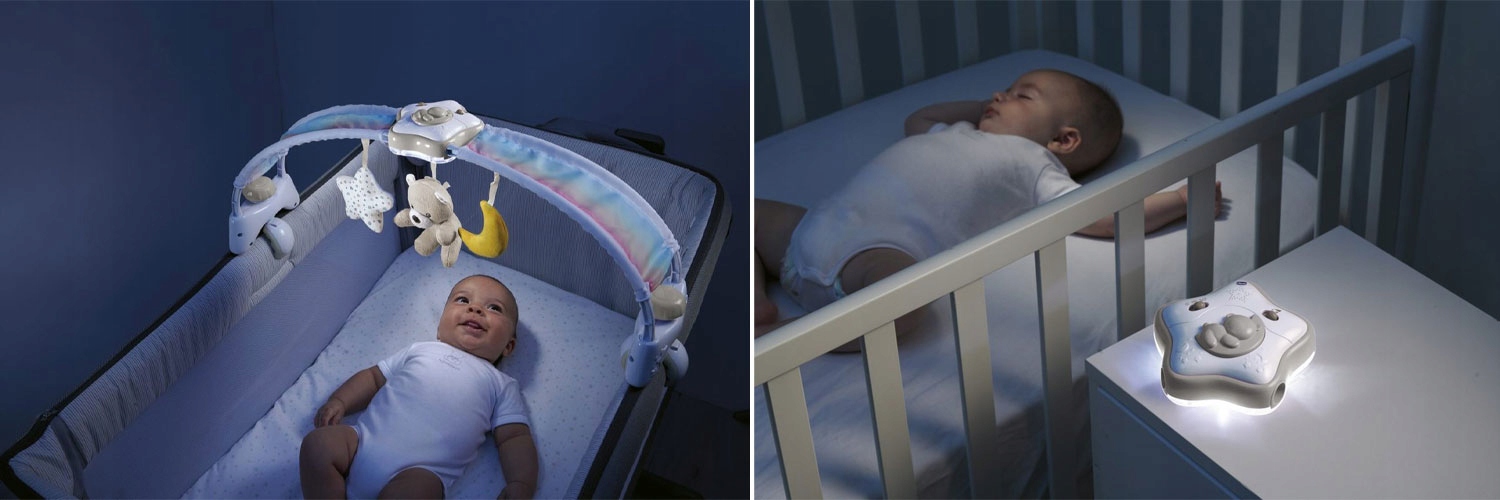Rainbow Panel Chicco играет классическую музыку мировых композиторов (Бах, Брамс, Моцарт, Бетховен) и Нью Эйдж. 15 и 30-минутные сеансы воспроизведения и выключатель громкости позволят вам адаптировать режим к текущим потребностям или предпочтениям.