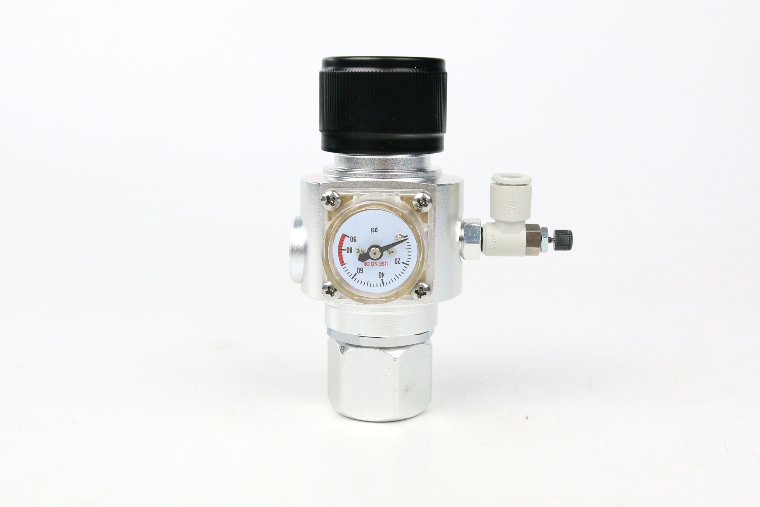Баллонный редуктор, подающий углекислый газ в аквариум. Он имеет один манометр, градуированный в фунтах на квадратный дюйм, показывающий давление в цилиндре. Диапазон манометра составляет от 0 до 90 фунтов на квадратный дюйм. Имеет стандартный вход для цилиндров W21.8. Регулятор дополнительно оснащен прецизионным клапаном, позволяющим определить необходимое количество CO2, подаваемого в аквариум. Регулятор компактен и имеет небольшие размеры. Изготовлен из цельных частей, которые вместе выглядят чрезвычайно элегантно. Устройство совместимо со счетчиком пузырьков Chihiros, доступным в нашем предложении.