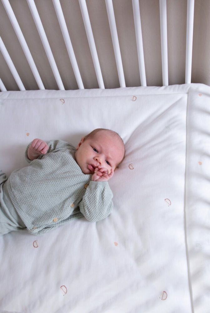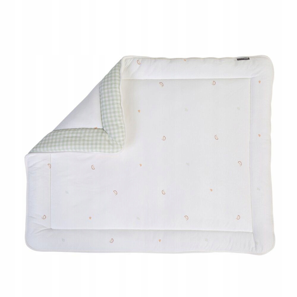 <р> Коврик украшен зеленым принтом в клетку Vichy с одной стороны и очаровательным лесным узором (сердечки, листья, ёжик) с другой.Примечание: коврик для манежа не подходит для сна ребенка.
