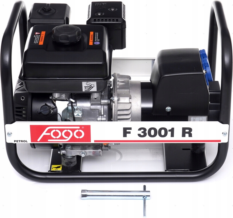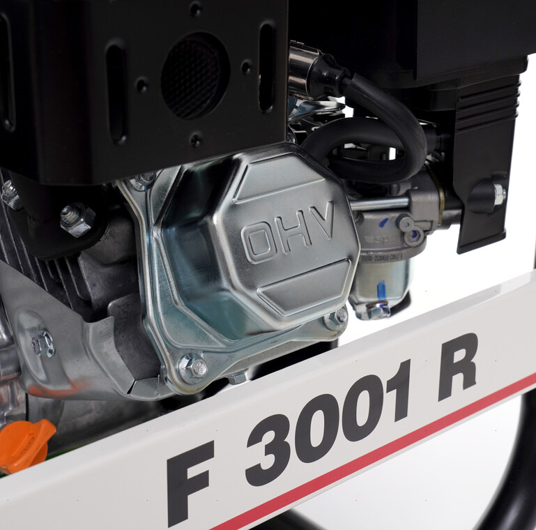 Генераторная установка Fogo F 3001 R представляет собой портативный генератор номинальной мощностью 2,5 кВт (максимальная мощность: 2,7 кВт) для однофазного тока. Генератор приводится в действие бензиновым двигателем Rato R210 объемом 212 см3 с ручным запуском. Устройство относится к серии AVR с электронным регулятором напряжения, поэтому в основном рекомендуется для питания таких устройств, как компьютер, сварочный аппарат, освещение, электропечь и т.п. Генератор F 3001 R оснащен синхронным генератором со степенью защиты IP23. класса, который защищен от случайного прикосновения пальцем и разбрызгивания воды под любым углом до 60 градусов от вертикали во все стороны. Машина имеет две однофазные розетки на 16 А, защиту от перегрузки и датчик уровня масла. Топливный бак генератора имеет емкость 3,6 л, а расход топлива при нагрузке 75 % составляет 1,4 л/ч.