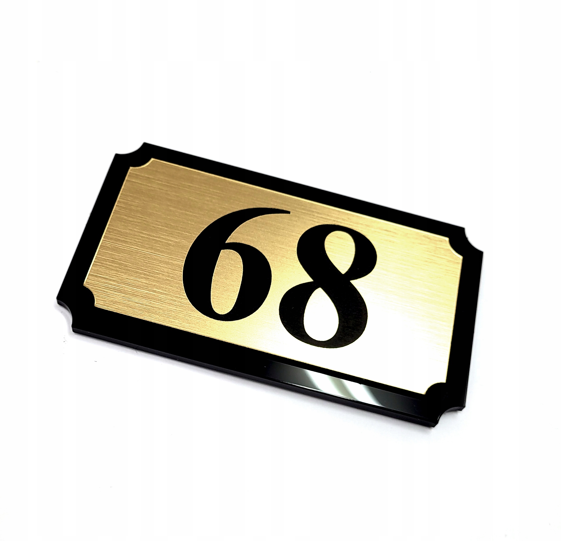 Табличка изготовлена из прочного гравировального ламината, цвета матового золота и высококачественного глянцевого черного оргстекла.