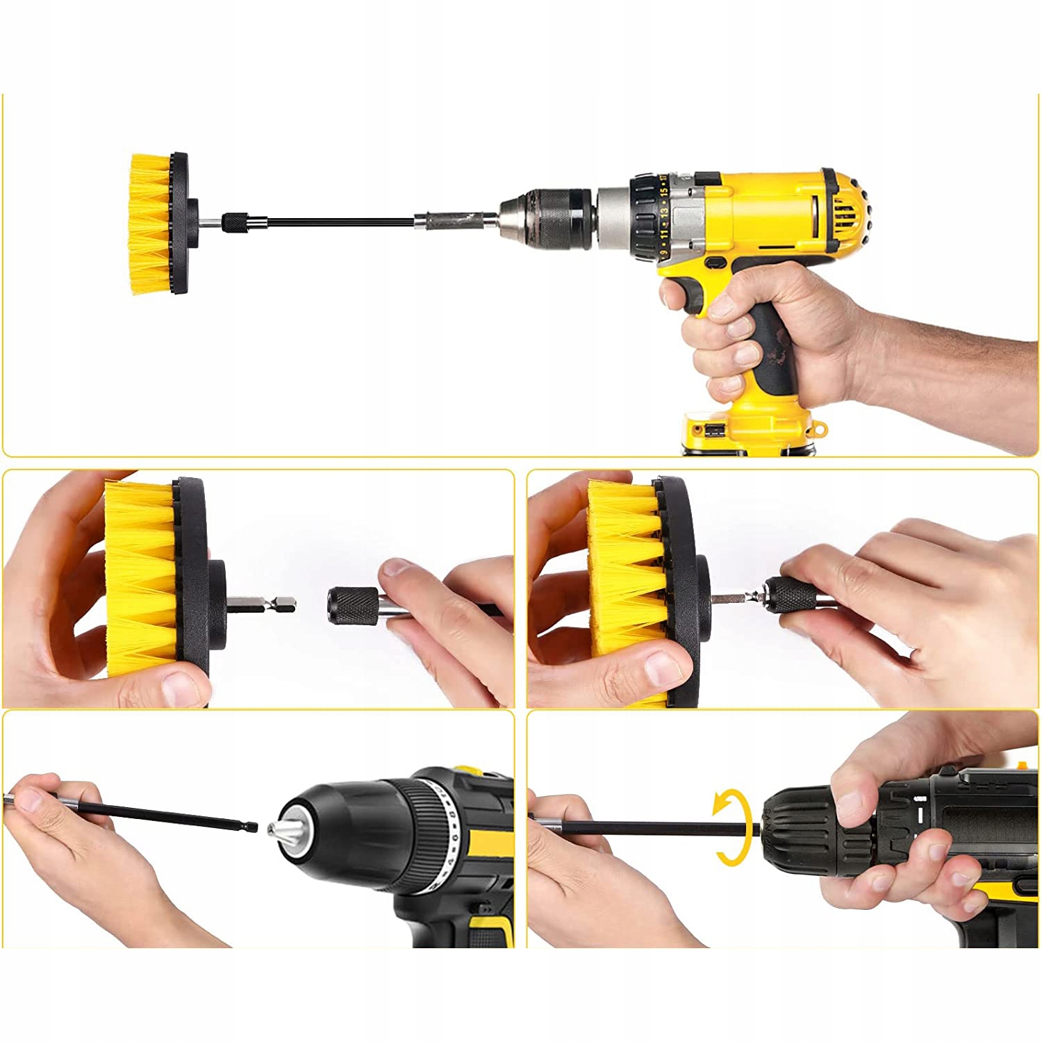 набор из 3 щетков для тренировки или отвертки - идеально подходит для очистки различных поверхностей. Набор будет работать как дома, так и в мастерской. Кисти совместимы с сверлами и отвертками, благодаря которой они являются практическим инструментом для эффективного удаления грязи с различных поверхностей Очистка