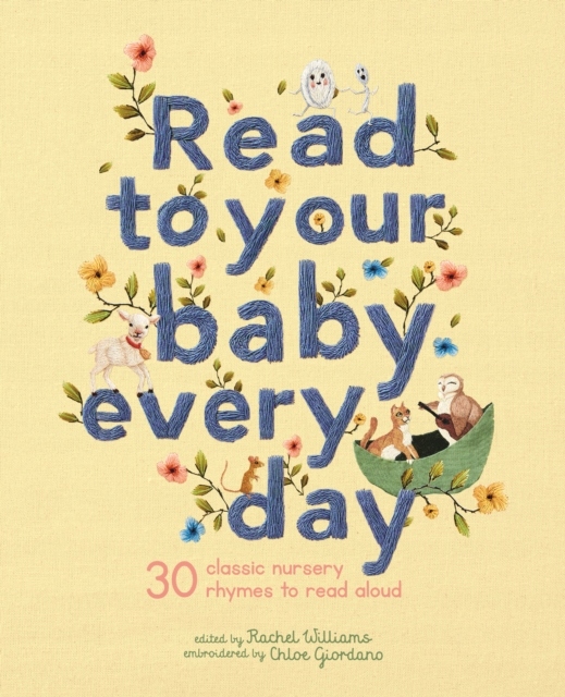 Один том испытанных и проведенных детских рифм и песен для новых родителей, чтобы поделиться со своим ребенком, иллюстрированным с очаровательным вышитым произведением искусства Хлои Гиордано.