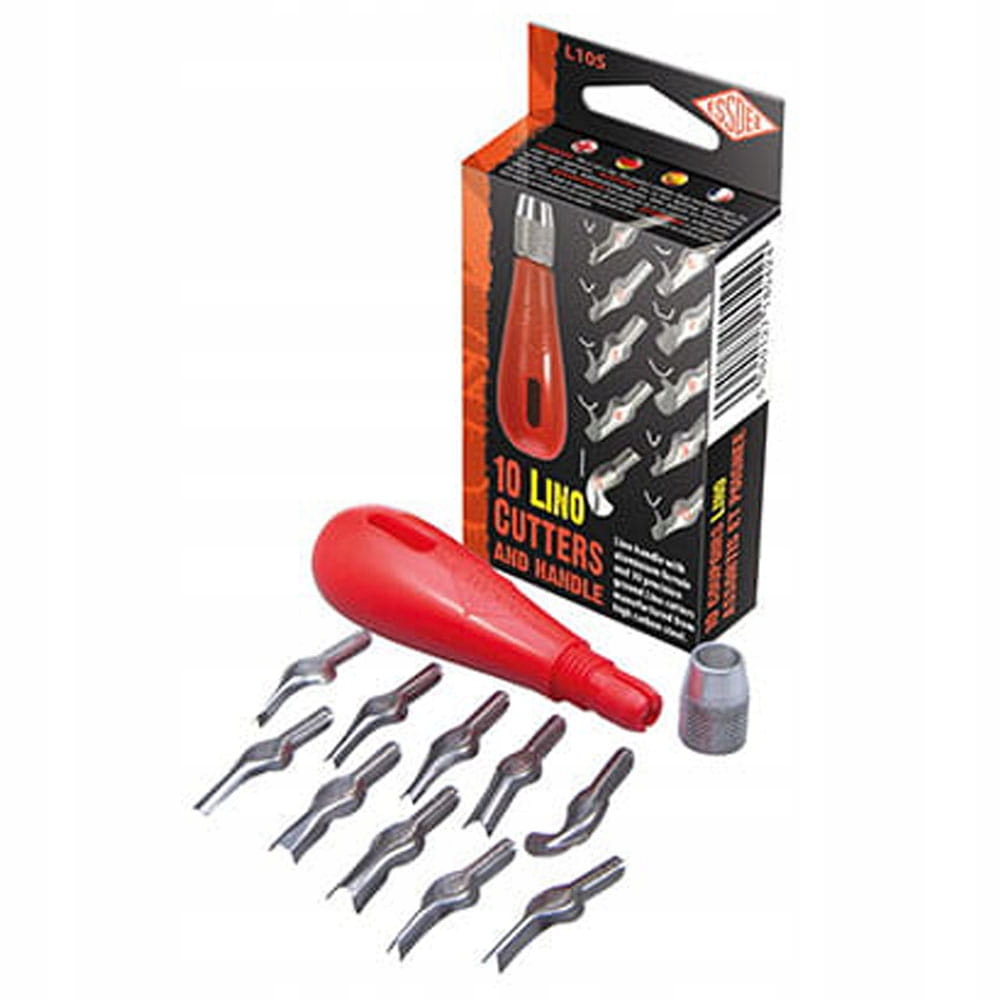L10s SET, предназначенный для LinoCut, содержит 10 цыплят (лопасти) в нумерации от 1 до 10 различных форм и профилей. Изготовлен из стали с высоким содержанием углерода, что гарантирует хорошее качество и долговечность лезвия. Набор также включает в себя литой из пластика (полипропилен), отделанный алюминиевым гайком, который застегивает встроенное зубило. Целое заключено в картонную коробку.