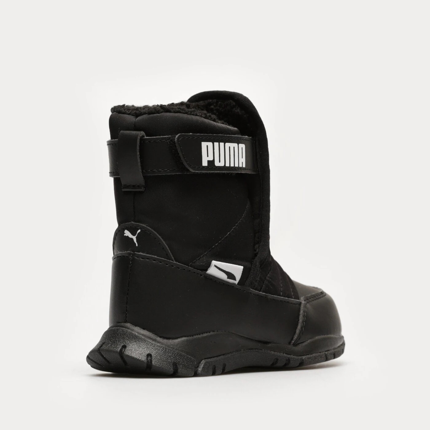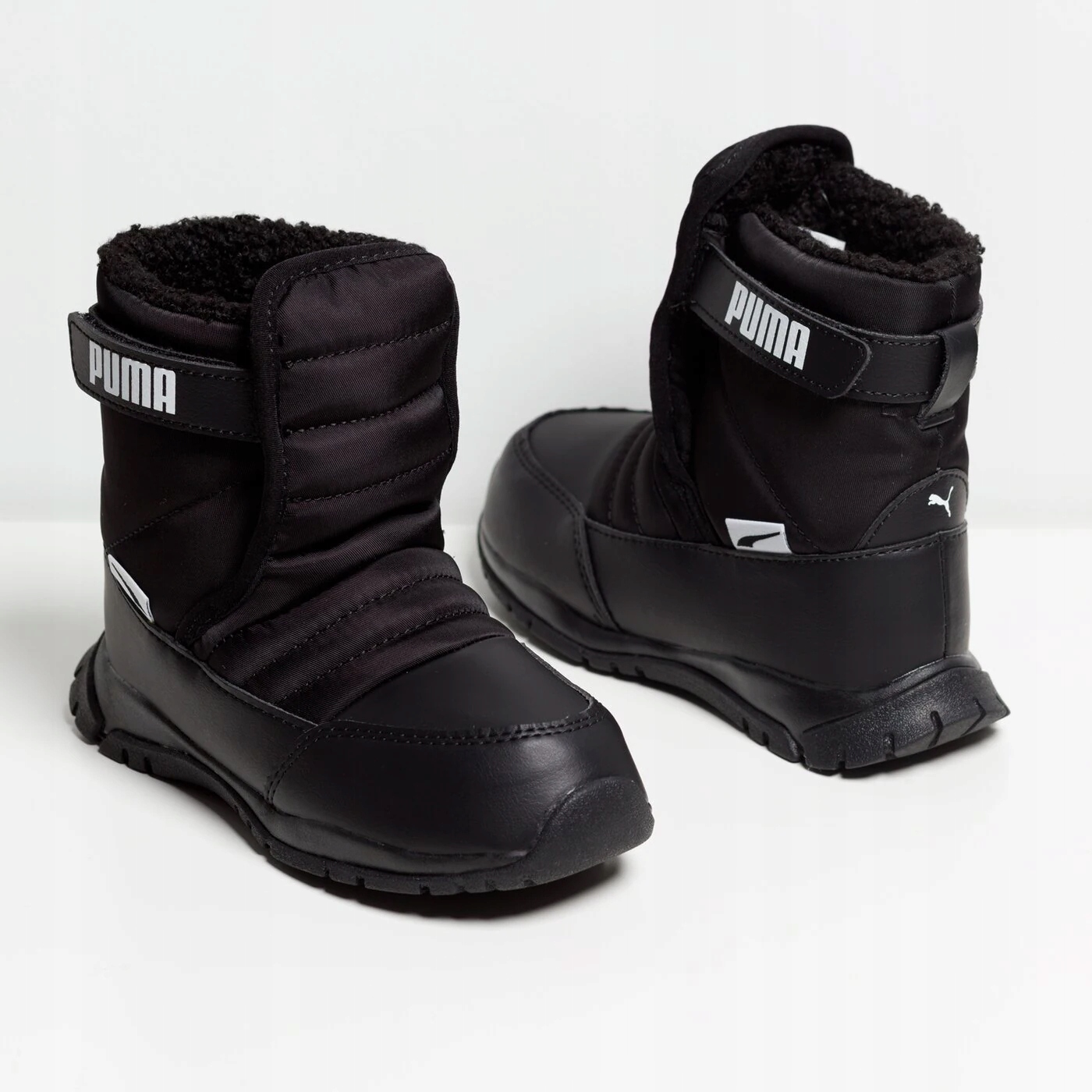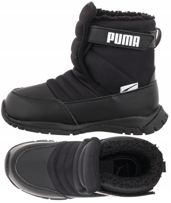Детская зимняя обувь Puma Nieve — отличная спортивная обувь для холодных дней. для самого младшего. Утепленные зимние ботинки Puma легкие, мягкие и чрезвычайно удобные, поэтому идеально подходят для зимней погоды. Их привлекательный спортивный дизайн привлекает внимание и делает их идеальным дополнением детского гардероба. Верх из высококачественного материала с гидрофобными свойствами обеспечивает эффективную защиту от осадков, намокания и непогоды. Резиновая подошва не только не пачкает поверхность, но и обладает водонепроницаемыми свойствами, что дополнительно защищает ножки ребенка.