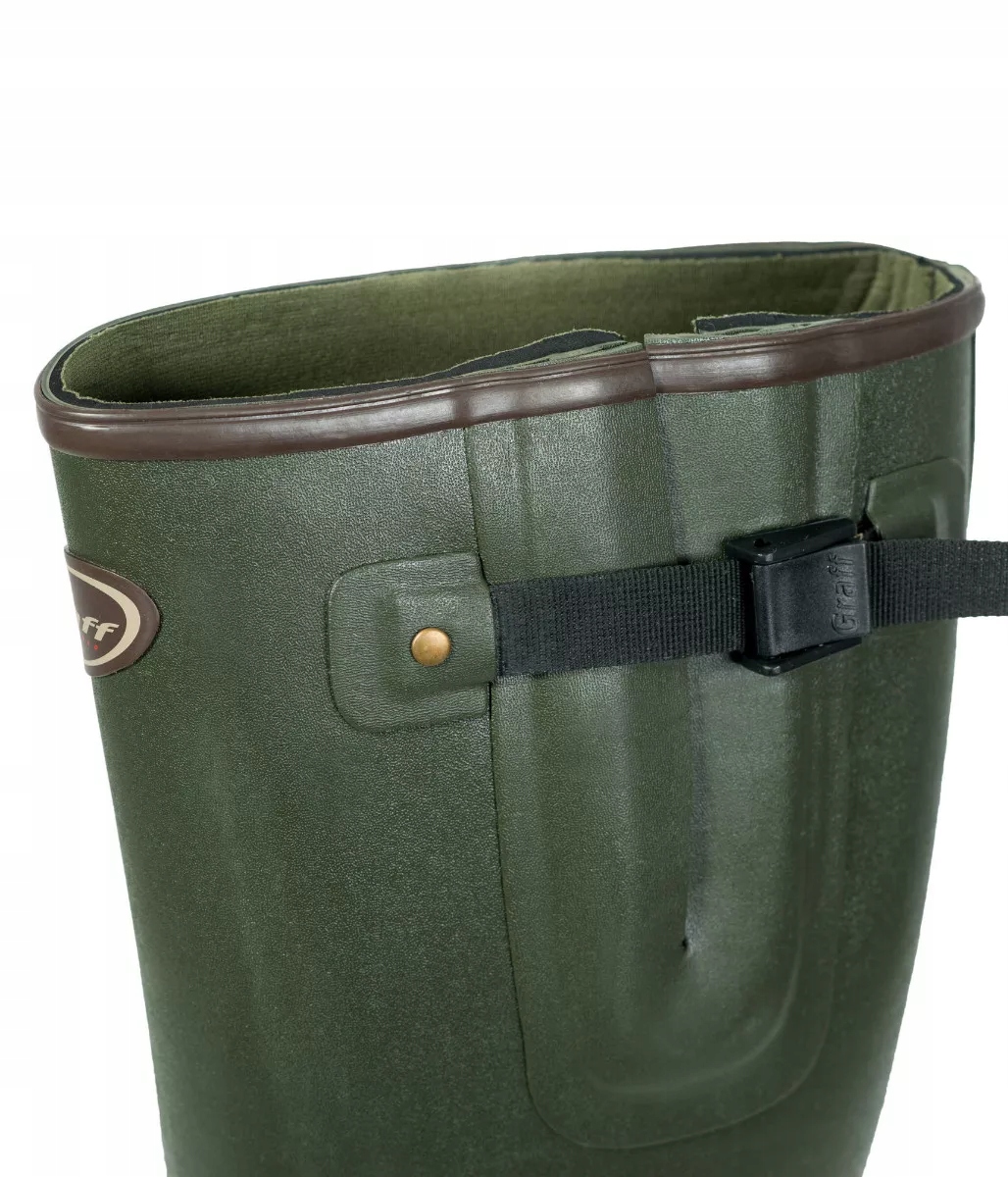 Ботинки GRAFF Wellington изготовлены из 100% резины и высококачественного материала, что обеспечивает долговечность и устойчивость к внешним факторам. Натуральный каучук, используемый для их производства, не содержит никаких химических добавок. Для процесса вулканизации разрешены только пигмент и необходимые добавки. Процесс вулканизации резины происходит при низких температурах, что помогает сохранить естественную влажность резины. Это важно для длительного срока службы материала.