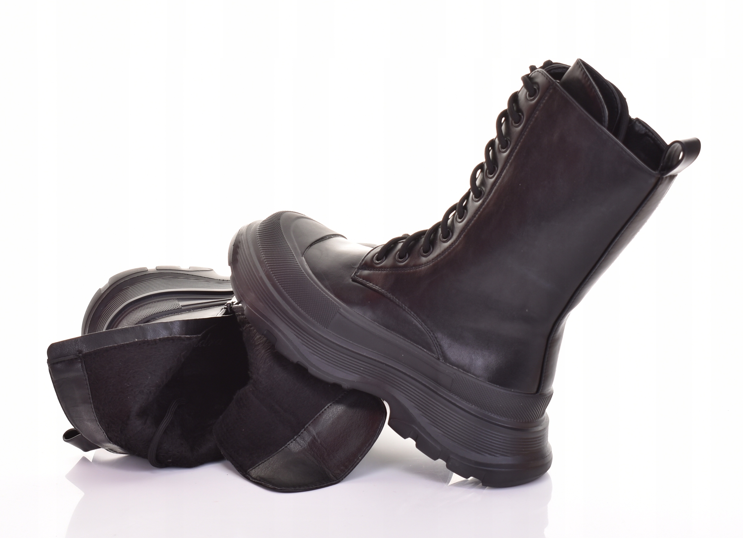 БОТИНКИ НА ВЫСОЙ ПЛАТФОРМЕ ЖЕНСКИЕ, ЧЕРНЫЕ КЛАССИЧЕСКИЕ ТРАПЕРЫ