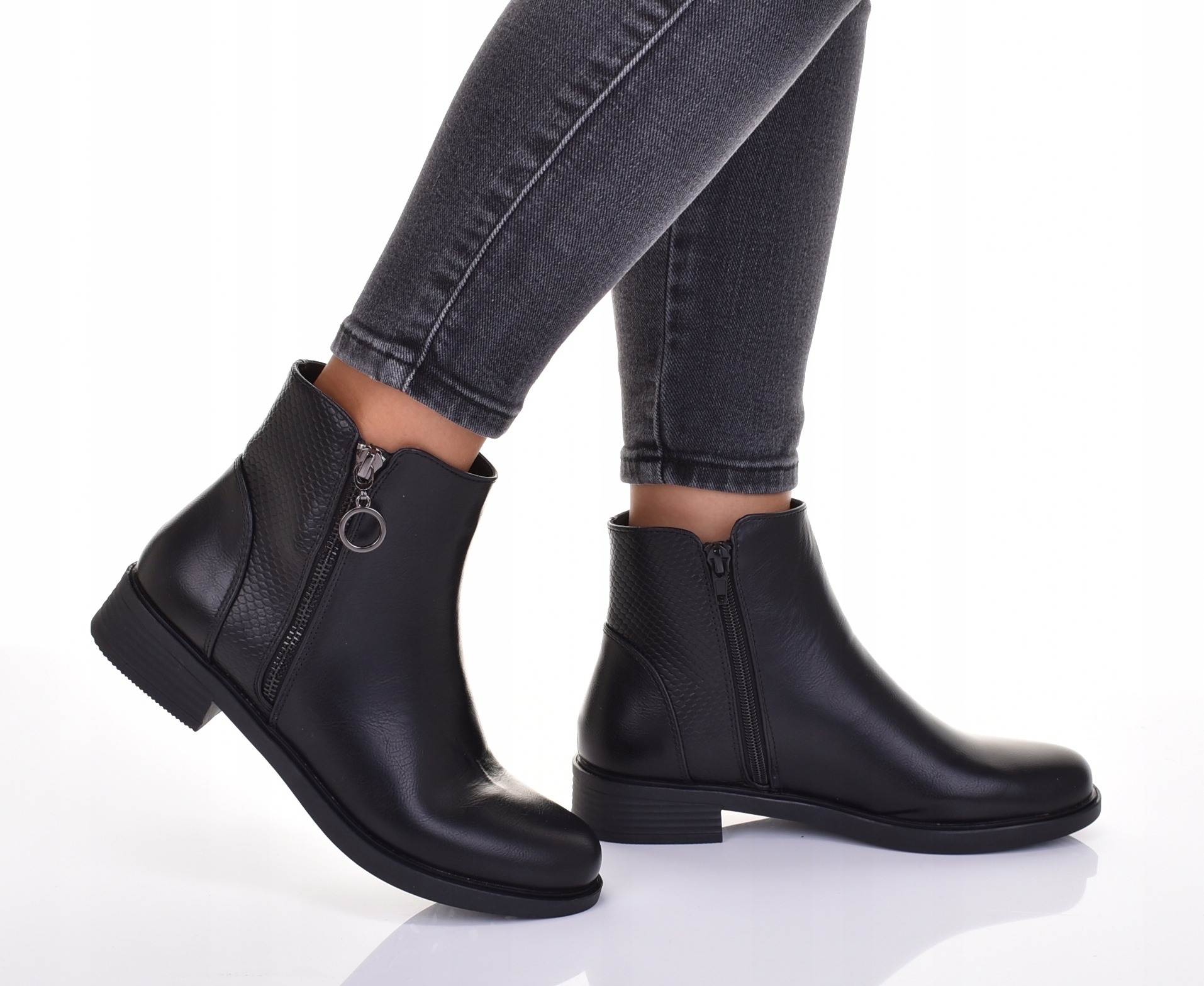 ЧОБОТИНКИ ЖІНОЧІ ШКІРЯНІ, ПЛОСКИЙ КАБЛУК, БЛИСКАВКА, МОДНІ, ЗРУЧНІ