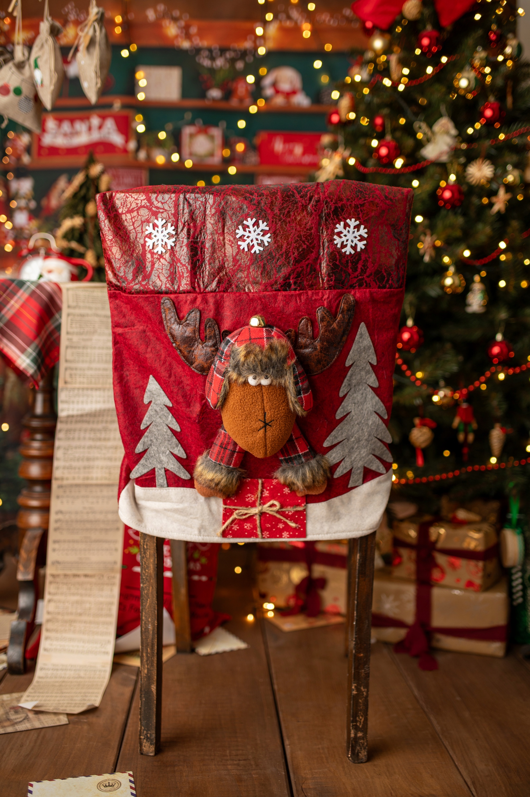 ЧЕХОЛ ДЛЯ РОЖДЕСТВЕНСКОГО СТУЛА СПИНКА РОЖДЕСТВЕНСКИЙ ОЛЕНЬ УНИВЕРСАЛЬНЫЙ