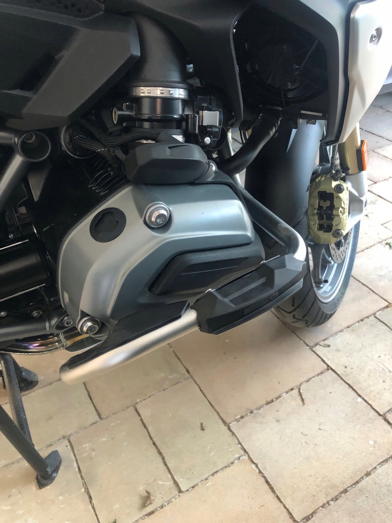 Этот комплект обеспечивает дополнительную защиту мотоцикла за счет увеличения расстояния двигателя от земли, а также защищает дуги безопасности от истирания.