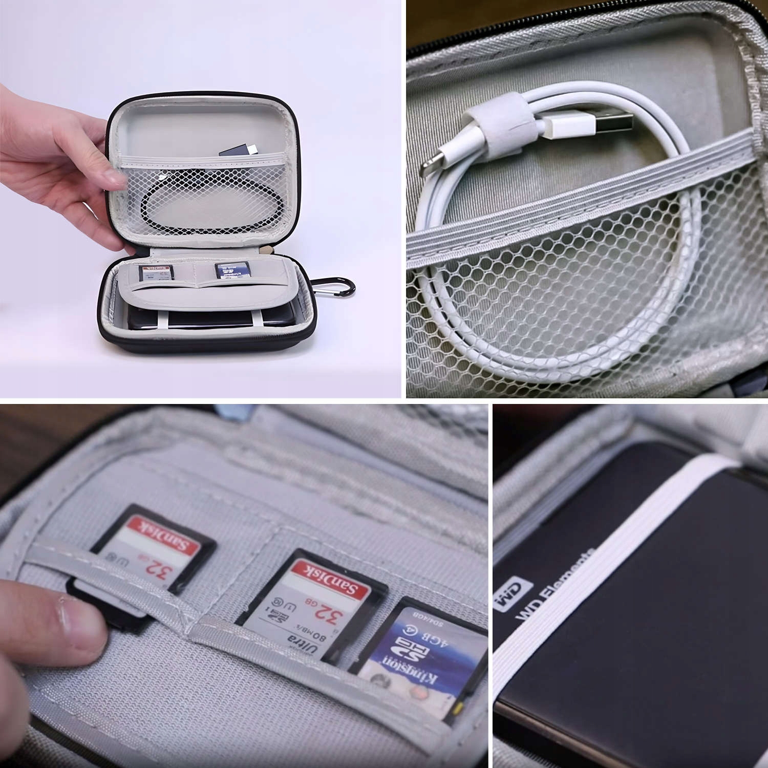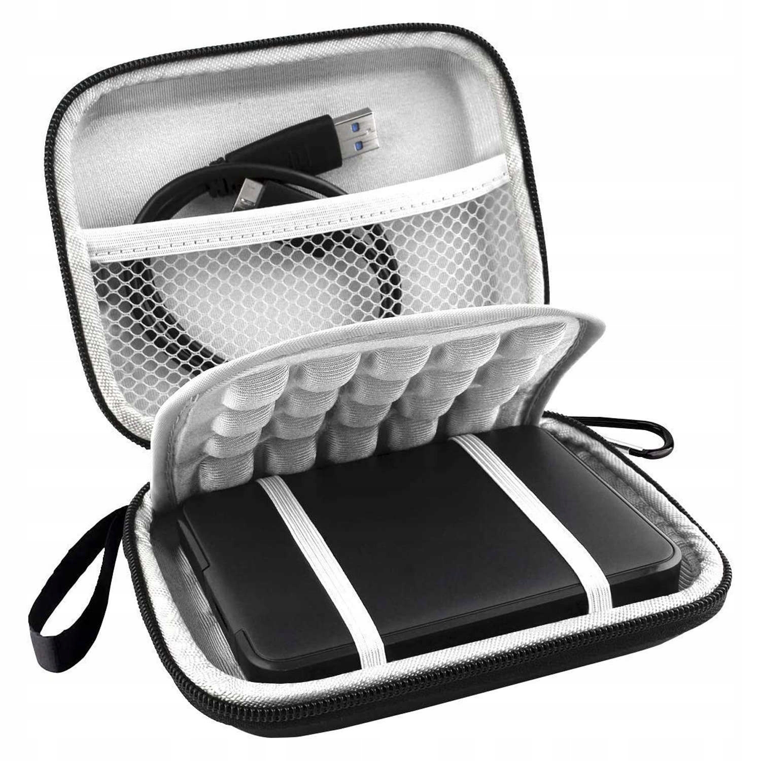 - Предназначен для хранения и безопасной переноски внешнего накопителя, кабелей, карт памяти или флэш-накопителей
