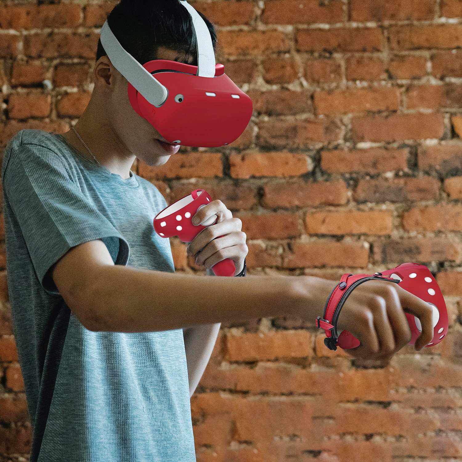 НАБОР ЗАЩИТНЫХ / ЧЕХЛОВ / ЧЕХЛОВ для VR ОЧКИ и КОНТРОЛЛЕРЫ. ЧЕХОЛ для очков Oculus Quest 2, который прекрасно защищает VR-очки от царапин и пятен. Чехол изготовлен из высококачественного силикона, его очень легко дезинфицировать, чистить и ухаживать.