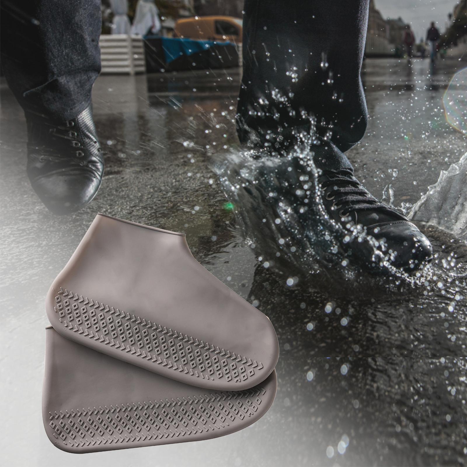 [Легко носить и снимать]: высокоэластичные резиновые бахилы от дождя имеют износостойкие расширяющиеся края с обеих сторон, их легко надевать и снимать.