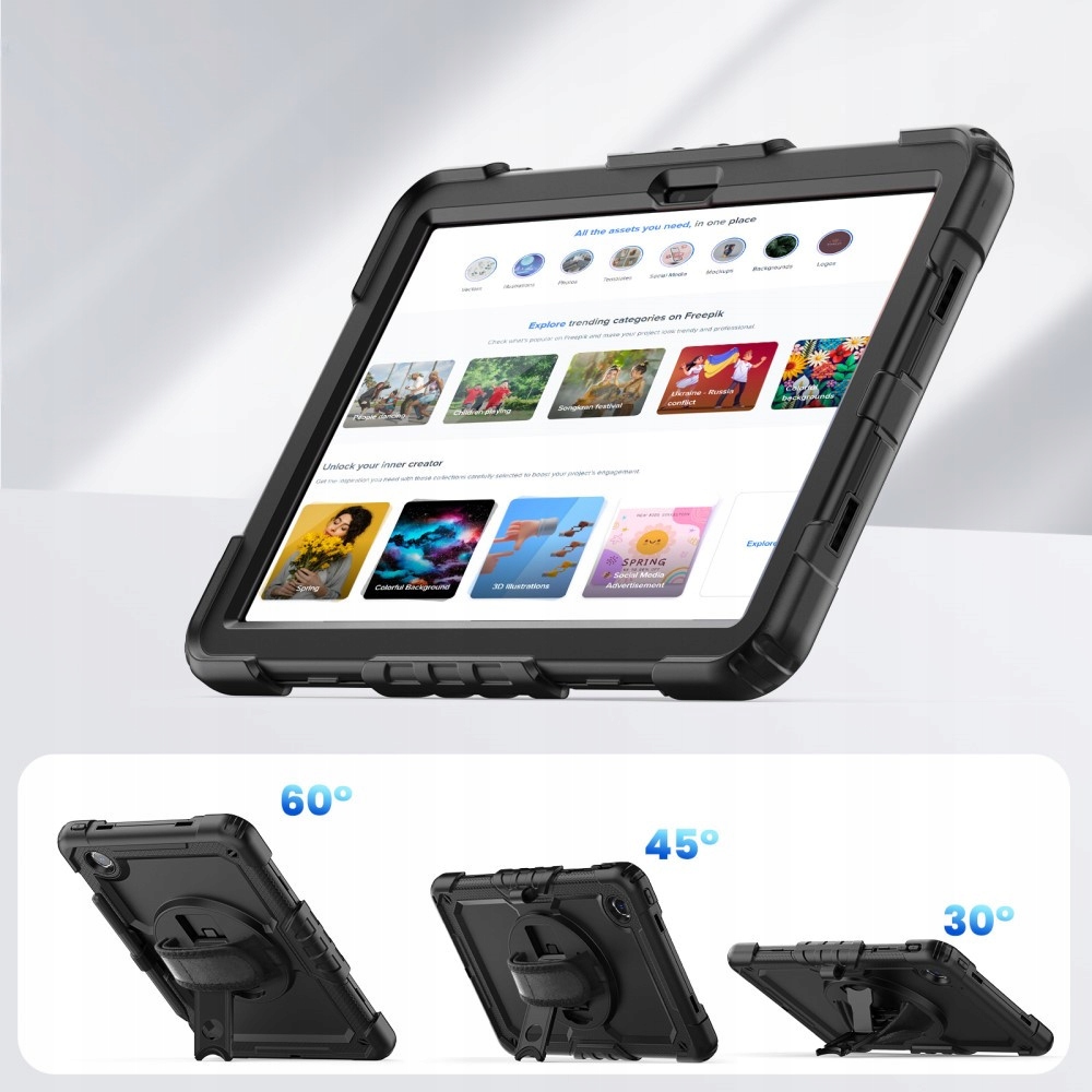 Встроенная поворотная подставка на 360 градусов облегчит просмотр фильмов в альбомной или портретной ориентации, а также ее можно использовать в качестве ручки.