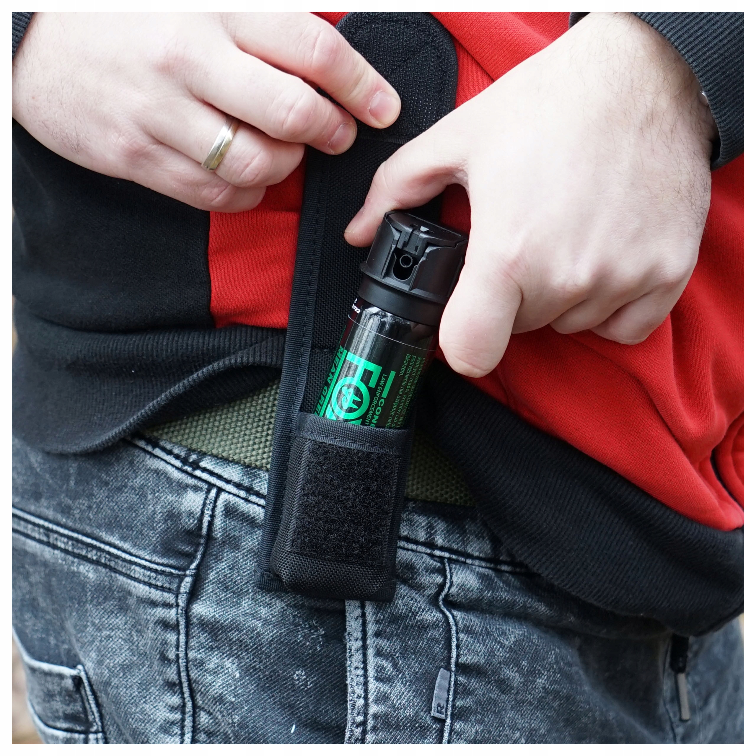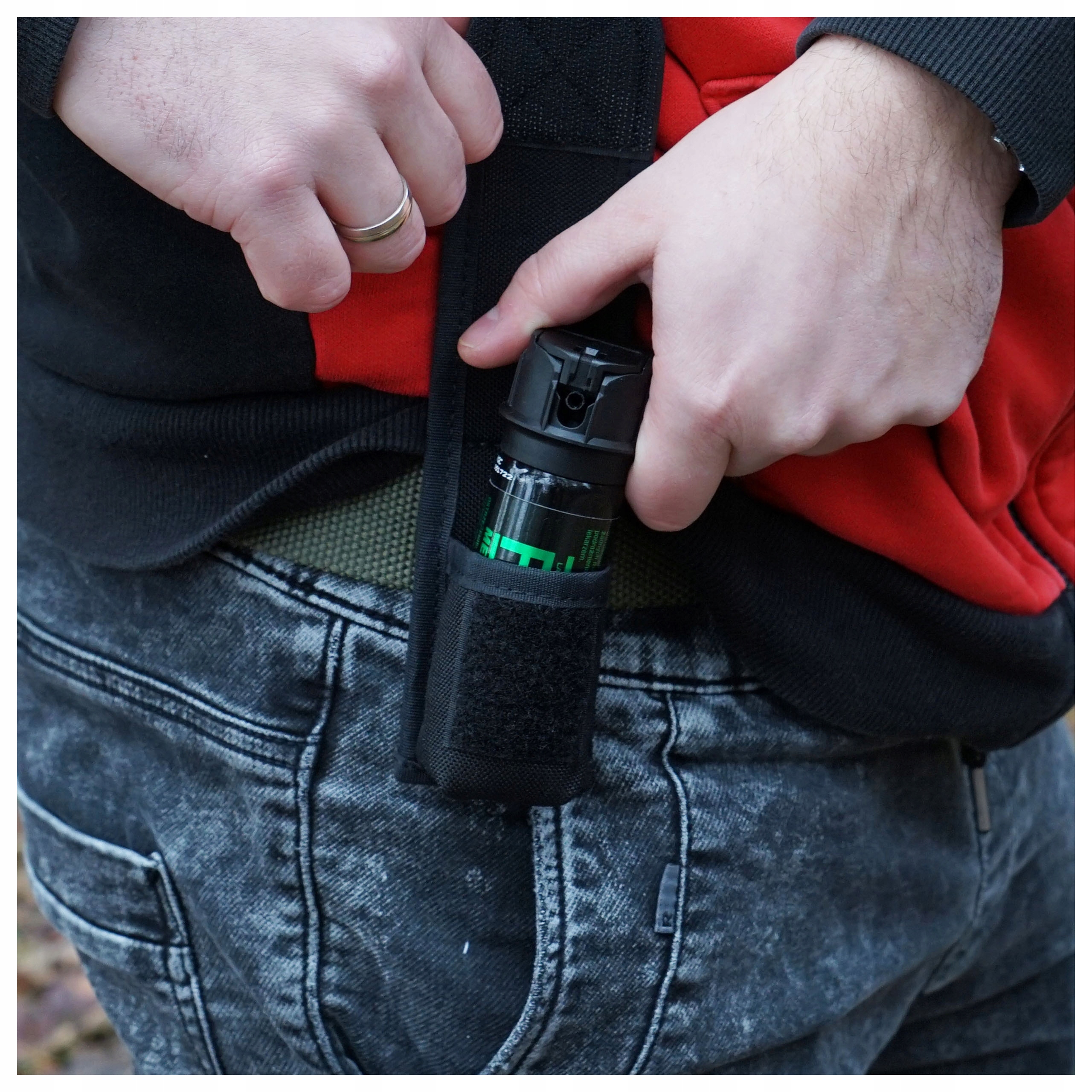 Маленькая кобура LUX для перцового баллончика из высококачественного нейлона от польской компании Holsters HPE Польша. Предназначен для ручных газометалок (РМГ/РМП) емкостью от 40 до 50 мл. Адаптирован по размеру под контейнеры высотой примерно 8,0–10,5 см. Ширина баллона не должна превышать 38 мм, чтобы беспрепятственно извлечь газ в стрессовой ситуации, требующей внезапной реакции.Чехол LUX изготовлен из прочного, ламинированного и усиленного нейлона черного цвета. Кобура застегивается на липучку (45 х 35 мм) с ремешком, позволяющим легко поднять клапан для немедленного удаления газа из чехла. Сзади имеется петелька (ремешок), с помощью которой можно прикрепить кобуру к ремню. Максимальная ширина полосы не должна превышать 55 мм.