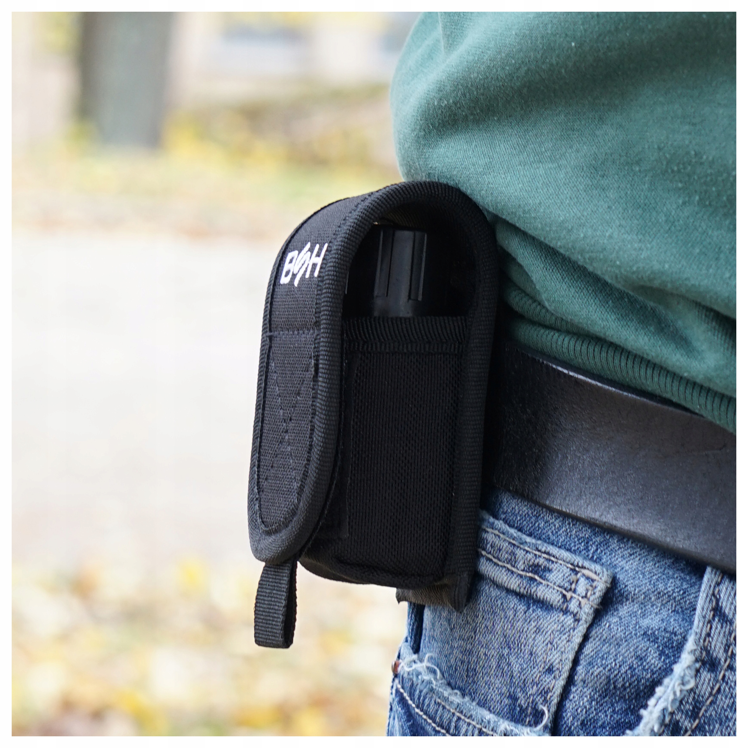 Небольшой, но вместительный чехол — это воплощение комфорта и долговечности. Изготовленный из кордуры, он не только модный, но и чрезвычайно прочный. Вы можете быть уверены, что он прослужит вам долгие годы. Кроме того, широкая петля для ремня позволяет легко прикрепить его к ремню брюк, поэтому перцовый баллончик всегда будет под рукой.