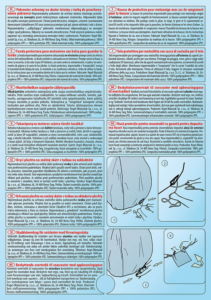 - Наденьте чехол на чистый и сухой снегоход печатной стороной наружу.