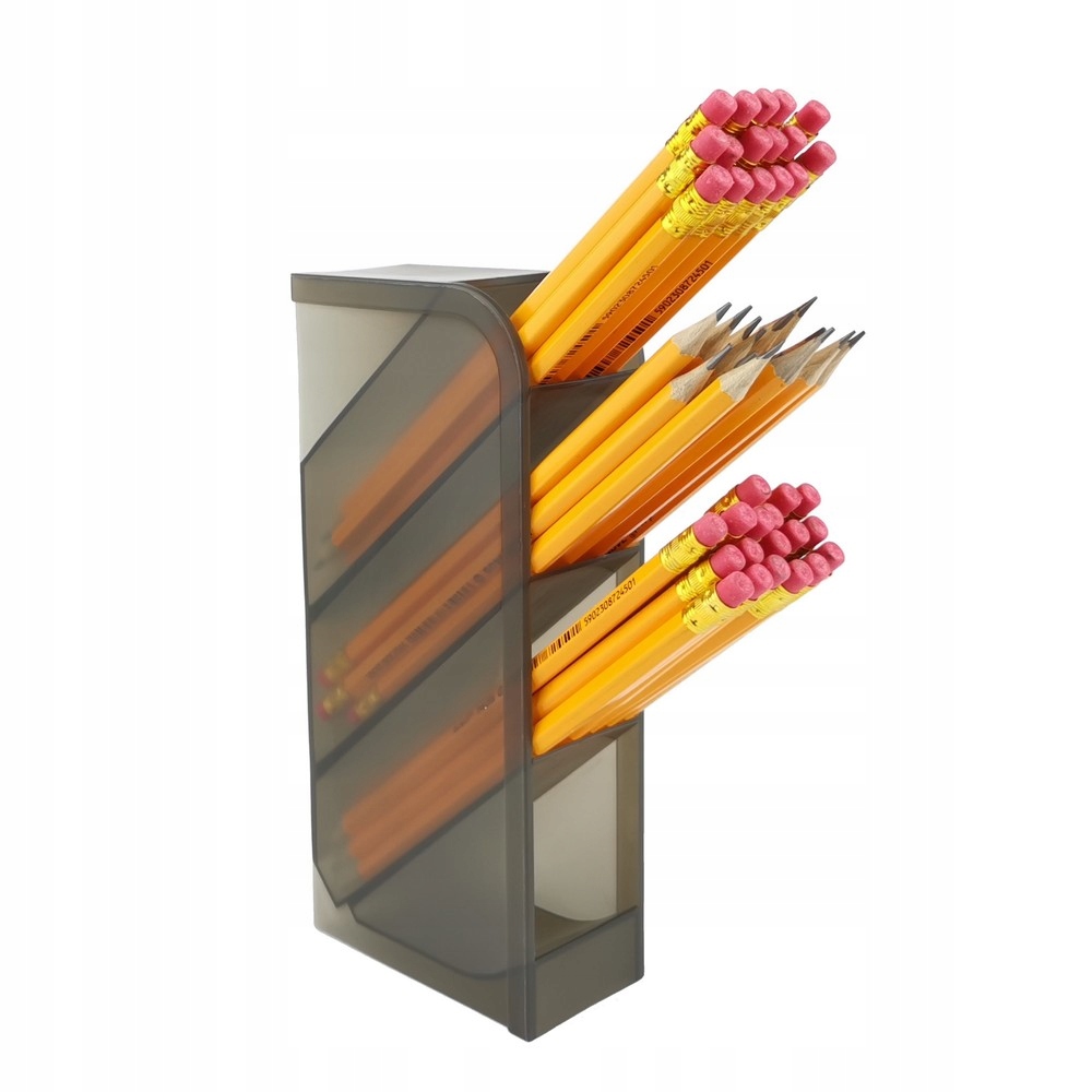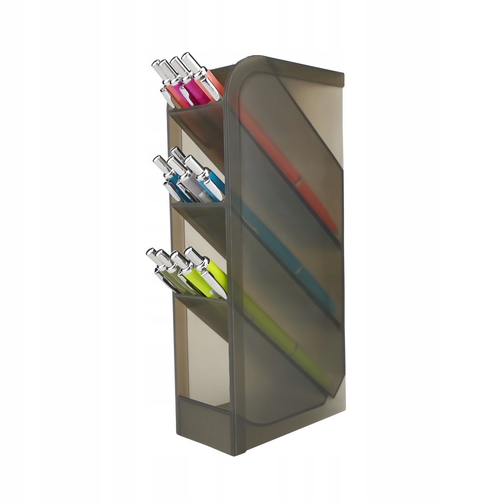 Вертикальный ящик для инструментов из прозрачного полипропилена. Помогает сэкономить место на столе. Оснащен 3 отделениями для канцелярских принадлежностей и 1 отделением для мелких канцелярских товаров. Размеры: 202 х 50 х 90 мм