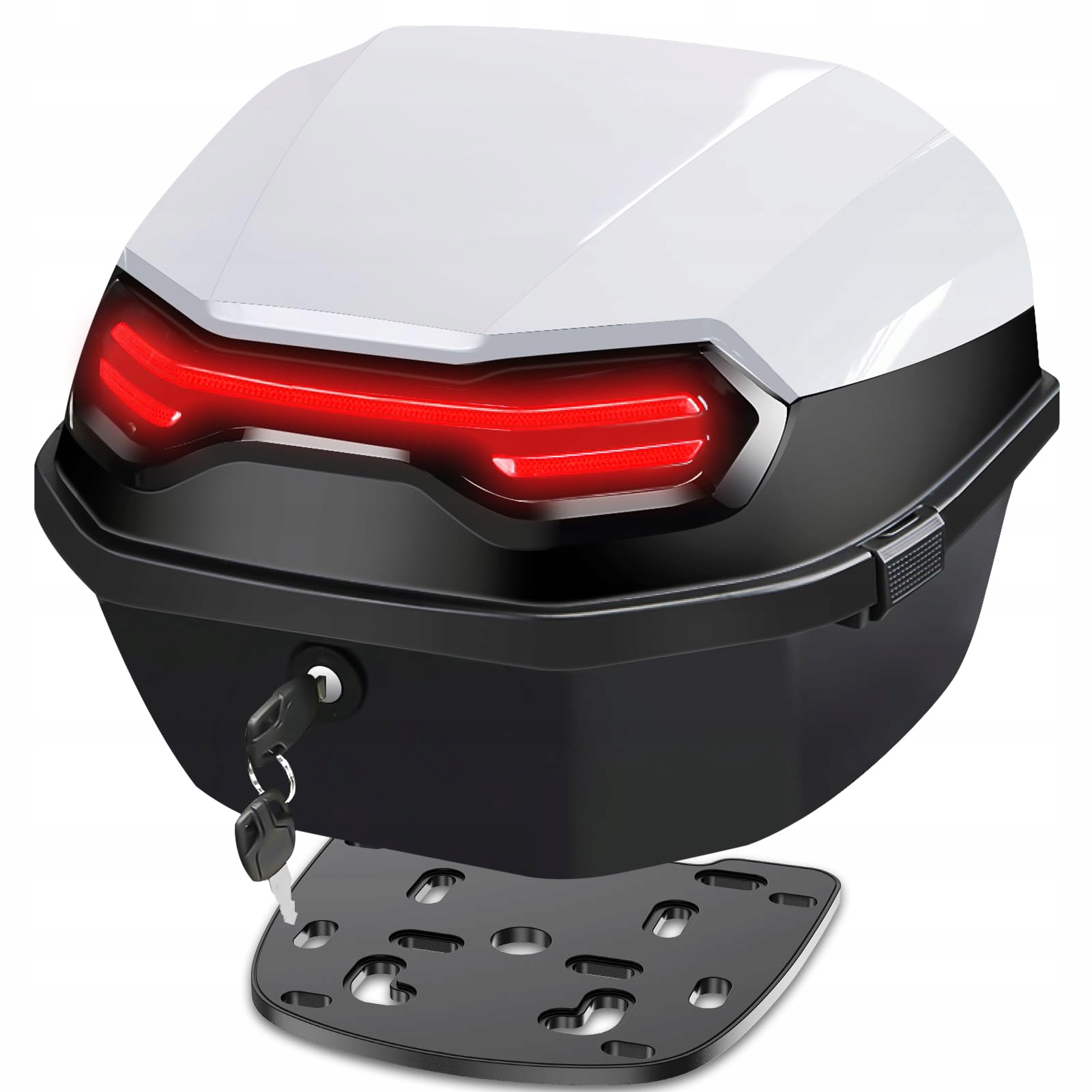Верхний ящик для мотоцикла LGVOA, водонепроницаемый чехол для хранения шлема для скутера, багажник для мотоцикла с замком, багажник для мотоциклетного мопеда, с опорной пластиной БЕЛАЯ КРЫШКА